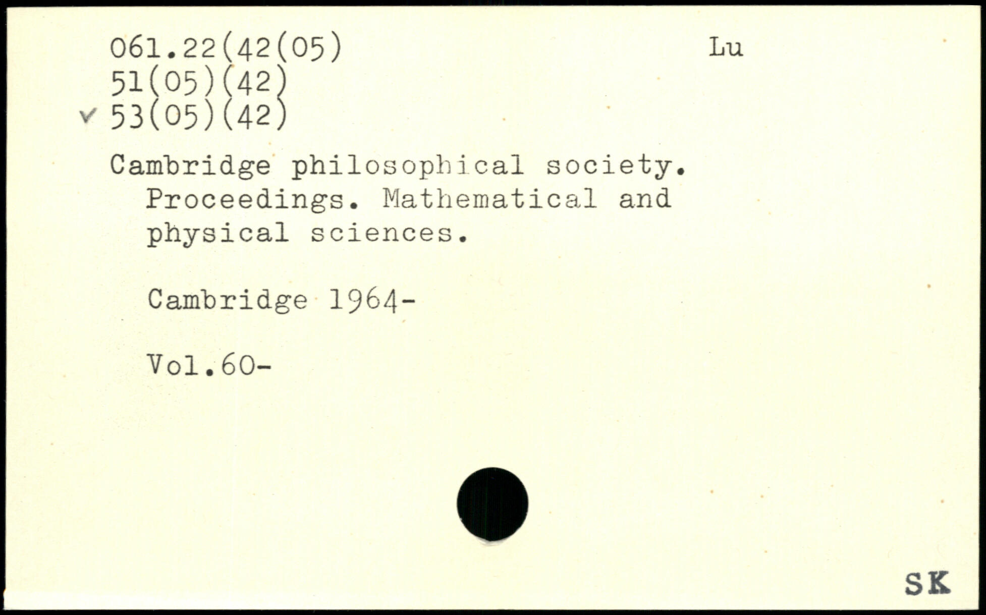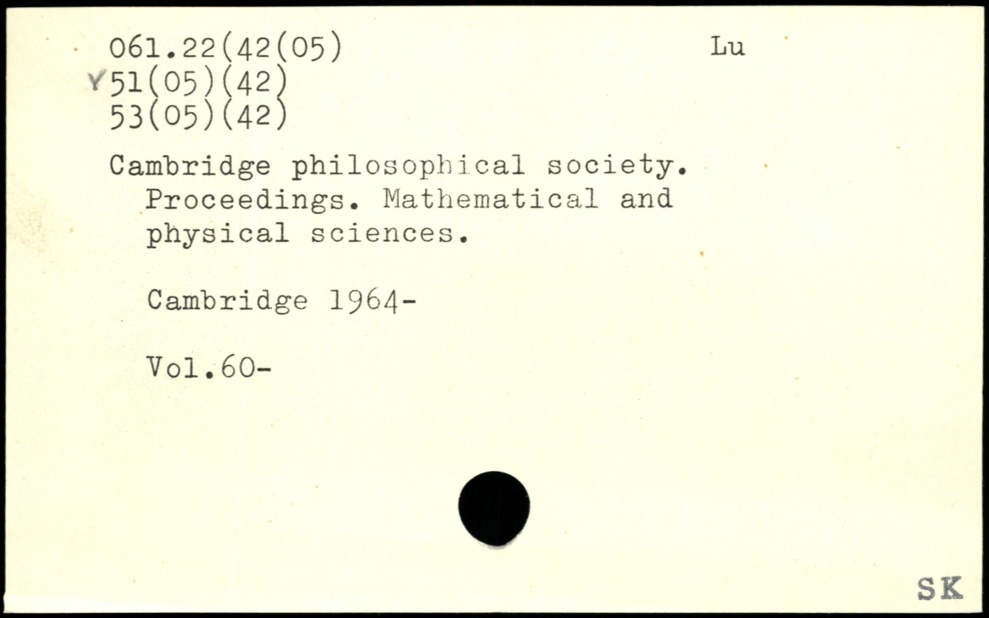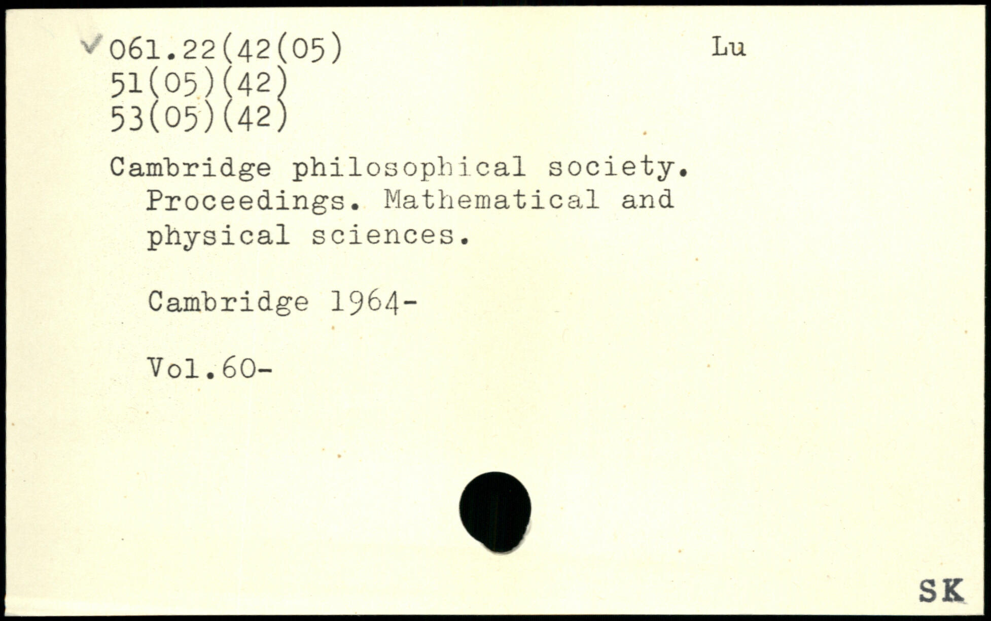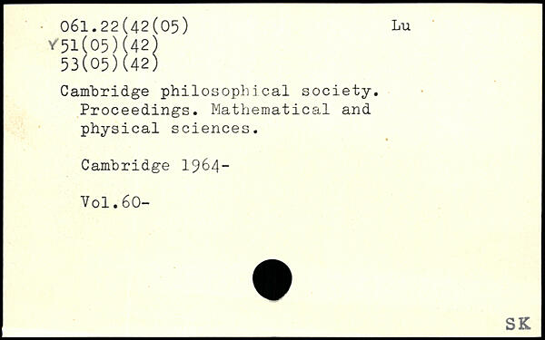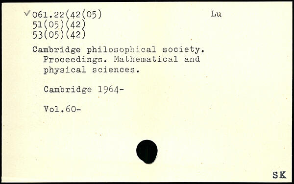 Cambridge philosophical society. Proceedings. Mathematical and physical sciences.