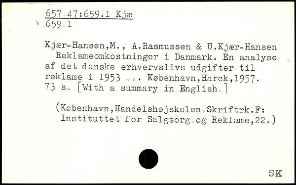 Kjær-Hansen,M., A.Rasmussen & U.Kjær-Hansen Reklameomkostninger i Danmark. En analyse af det danske erhvervslivs udgifter til reklame i 1953 00.