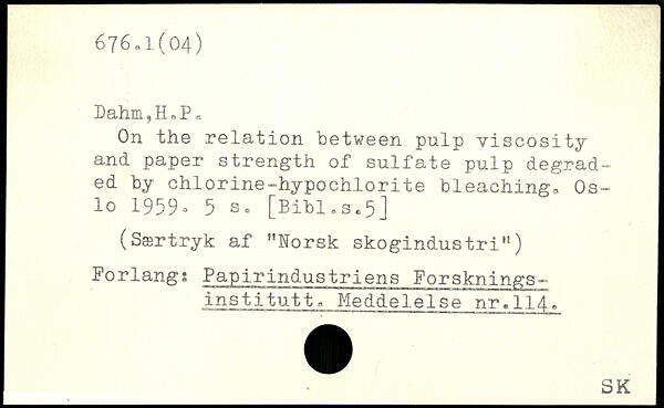 On the relation between pulp viscosity and paper strength of sulfate pulp degraded by chlorine-hypochlorite bleaching. Oslo 1959