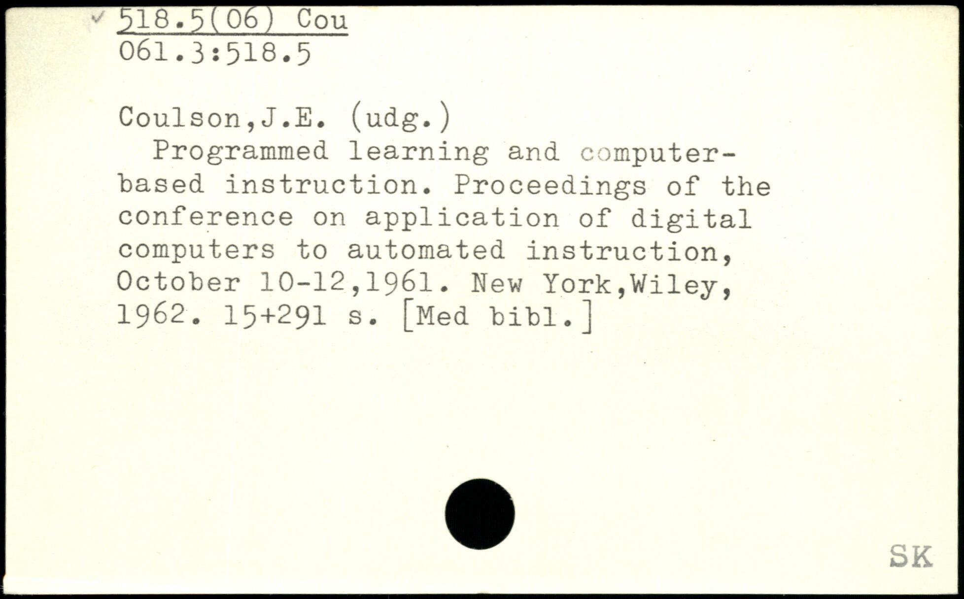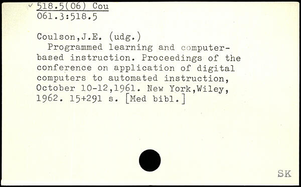 Programmed, learning and computer-based instruction. Proceedings of the conference on application of digital computers to automated instruction, October 10-12,1961.