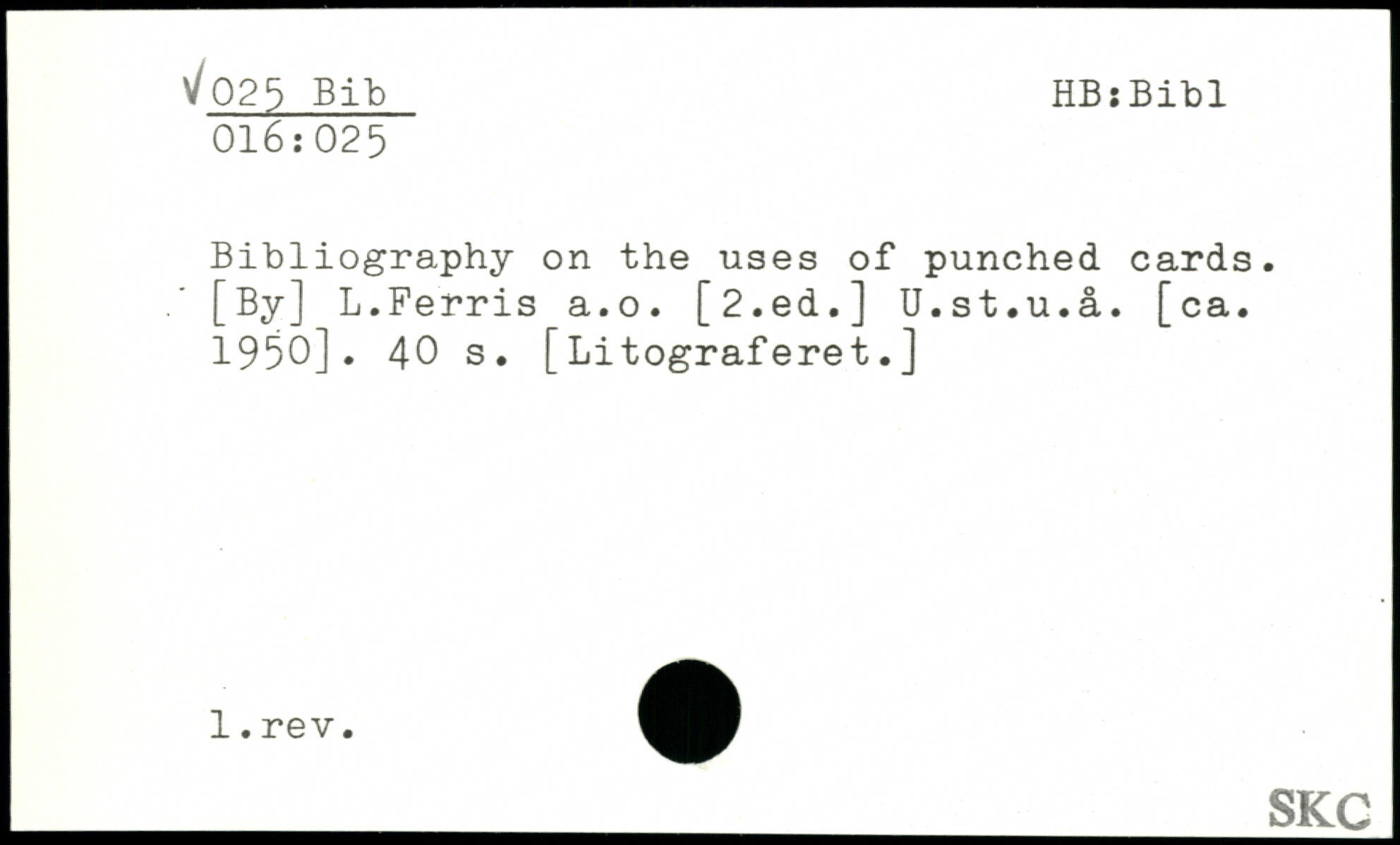 Bibliography on the uses of punched cards. [By] L.Ferris a.o. [