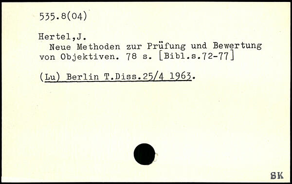 Neue Methoden zur Prüfung und Bewertung von Objektiven.