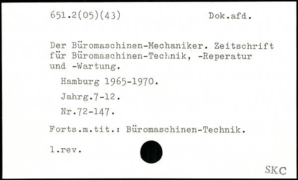 Der Büromaschinen-Mechaniker. Zeitschrift für Büromaschinen-Technik, -Reperatur und -Wartung.