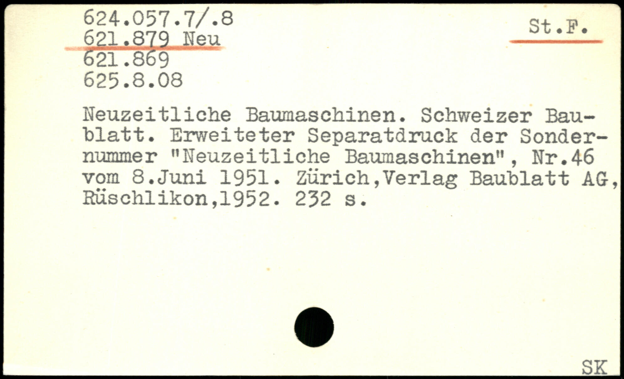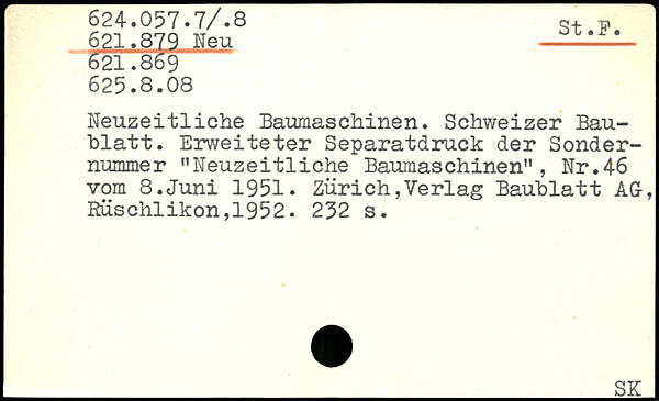 Neuzeitliche Baumaschinen. Schweizer Bau-hlatt. Erweiteter Separatdruck der Sondernummer ”Neuzeitliche Baumaschinen”, Nr.46 vom 8.Juni 1951.