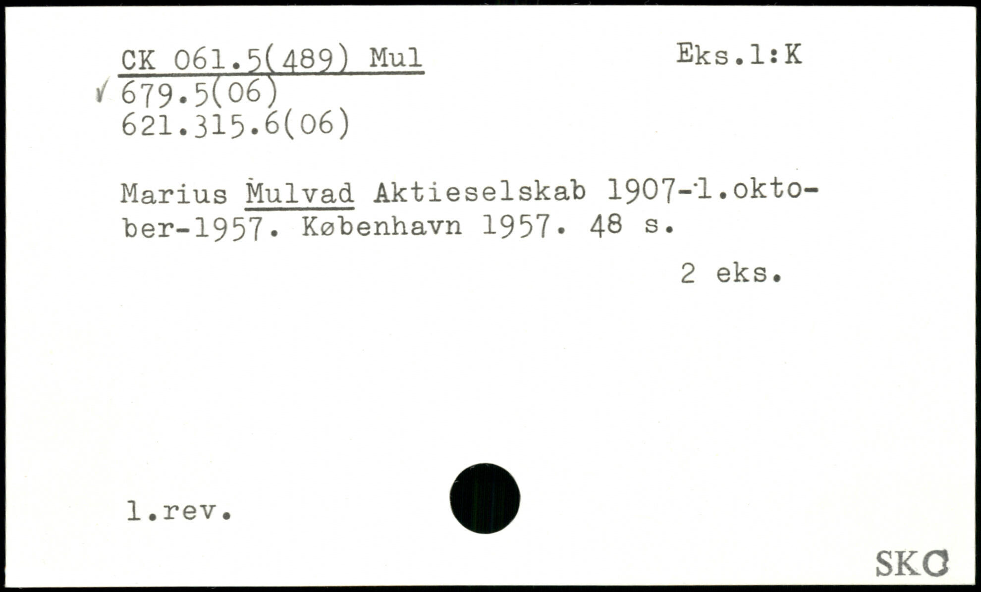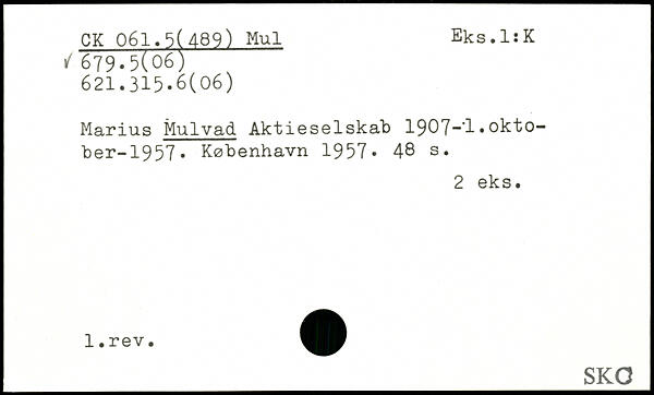 Marius Mulvad. Aktieselskab 1907“'l. okto-ber-1957.