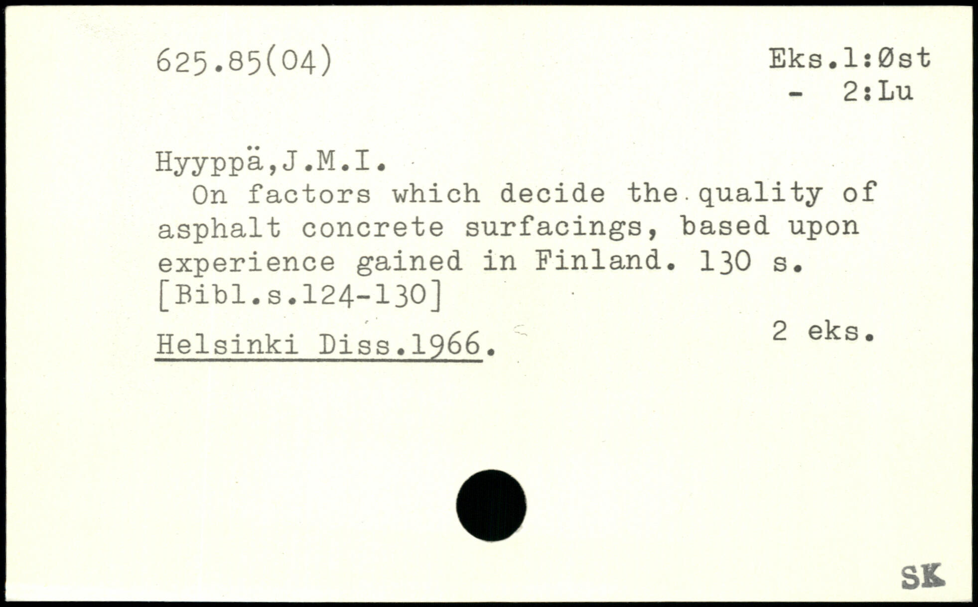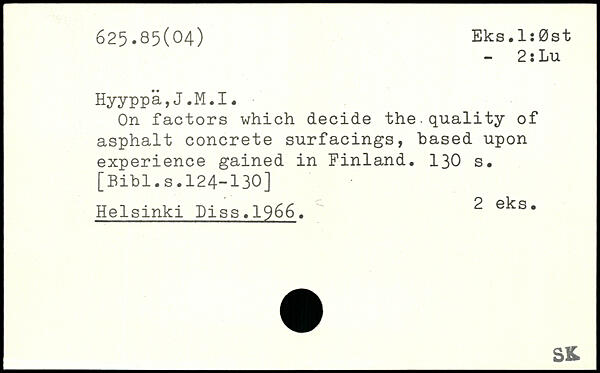 On factors which decide the.quality of asphalt concrete surfacings, based upon experience gained in Finland.