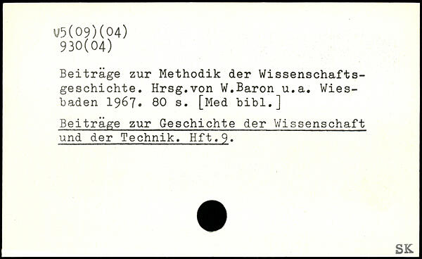 Beiträge zur Methodik der Wissenschaftsgeschichte. Hrsg.von W.Baron u.a. Wiesbaden 1967.