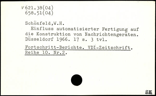 Einfluss automatisierter Fertigung auf die Konstruktion von Nachrichtengeräten. Düsseldorf 1966.