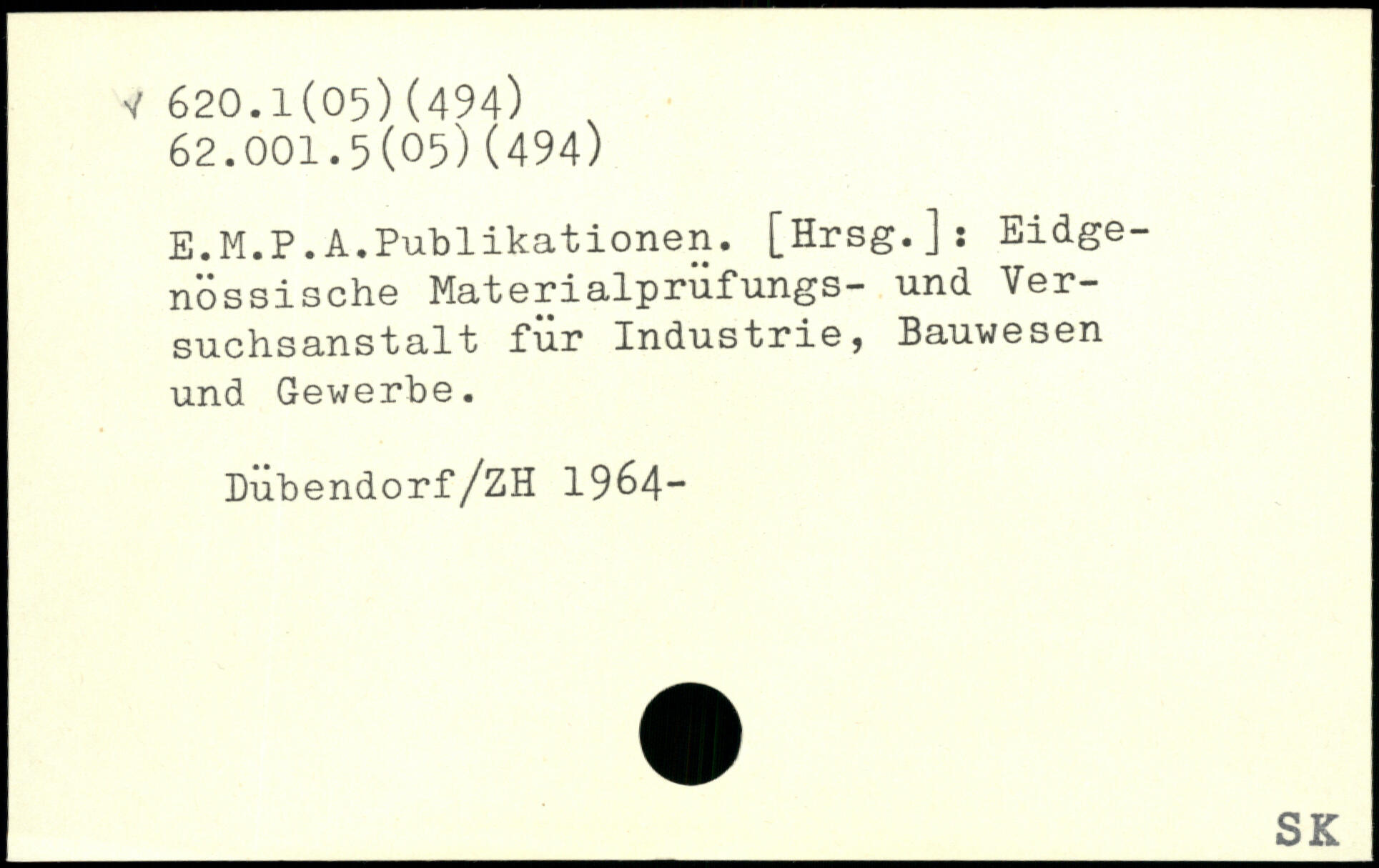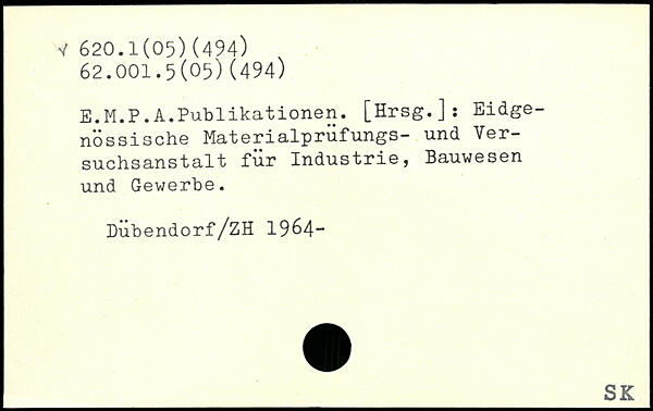 E.M.P.A.Publikationen. [Hrsg.].. Eidgenössische Materialprüfungs- und Versuchsanstalt für Industrie, Bauwesen und Gewerbe. Bubendorf/ZH 1964“