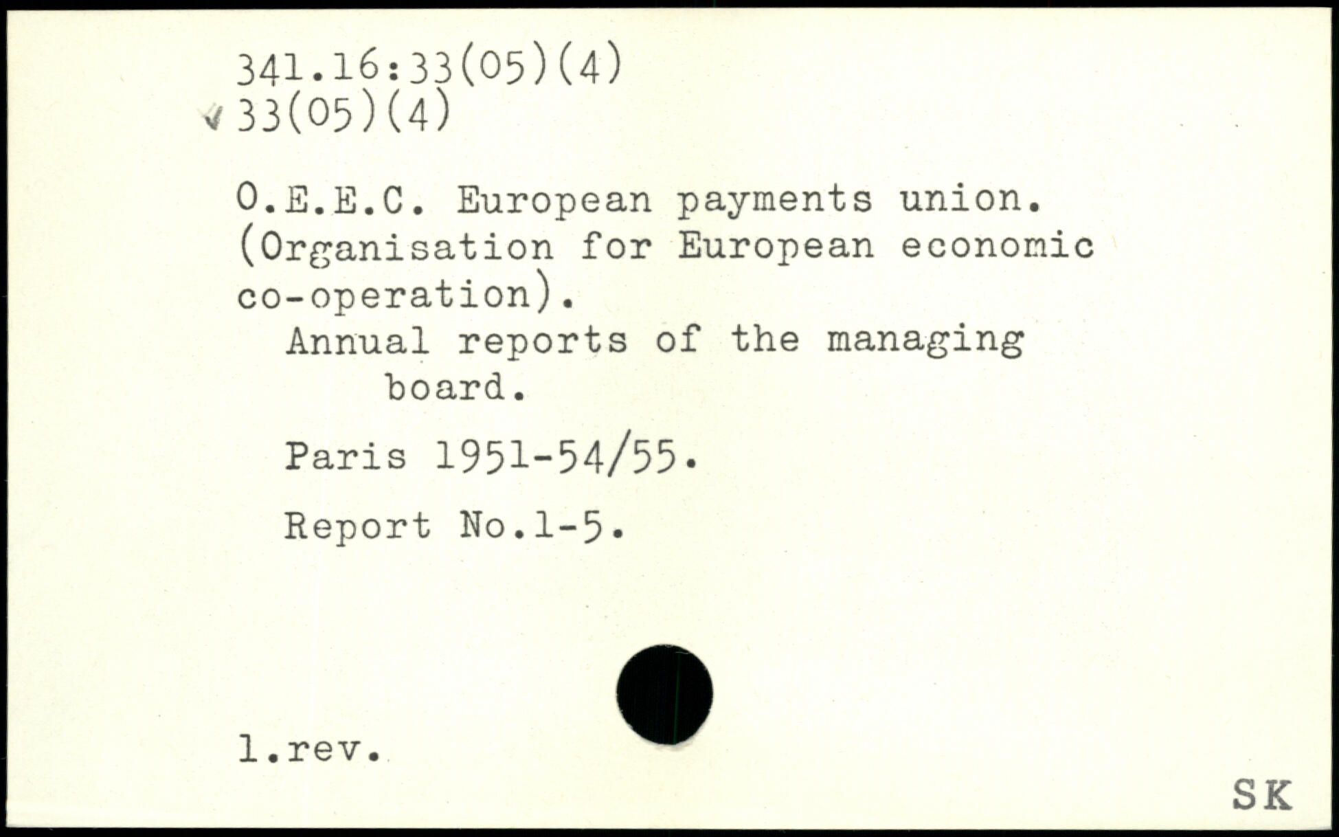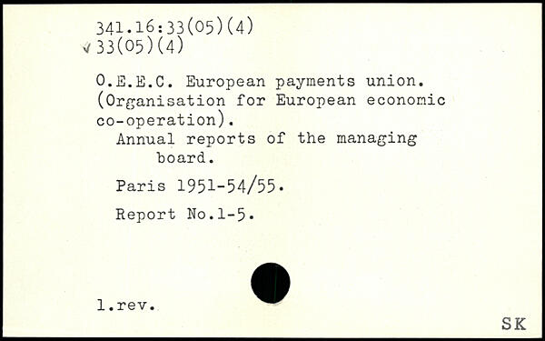 O.E.E.C. European payments union. (Organisation for European economic co-operation). Annual reports of the managing hoard.