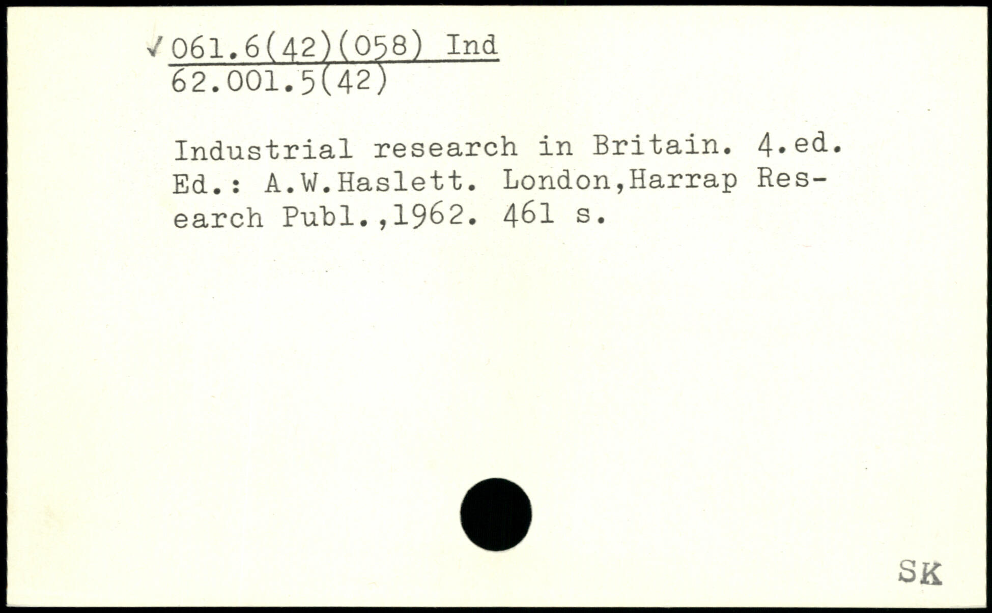 Industrial research in Britain. 4-ed. Ed.: A.W.Haslett.