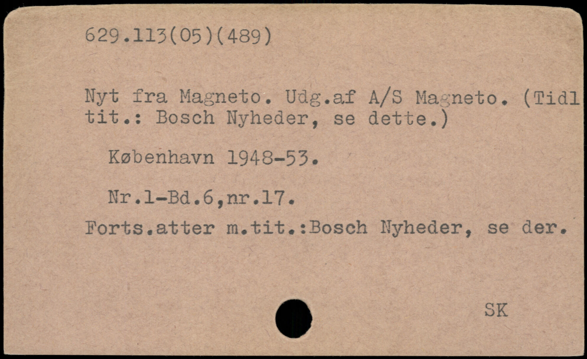 Nyt fra Magneto. Udg.af A/S Magneto. (Tidl tit.: Bosch Nyheder, se dette.)