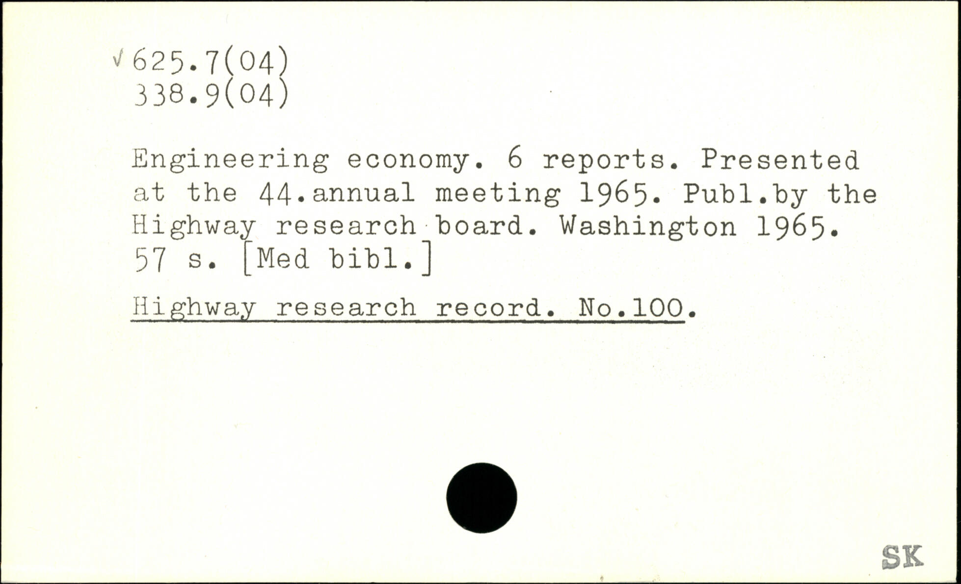 Engineering economy. 6 reports. Presented at the 44.annual meeting 1965