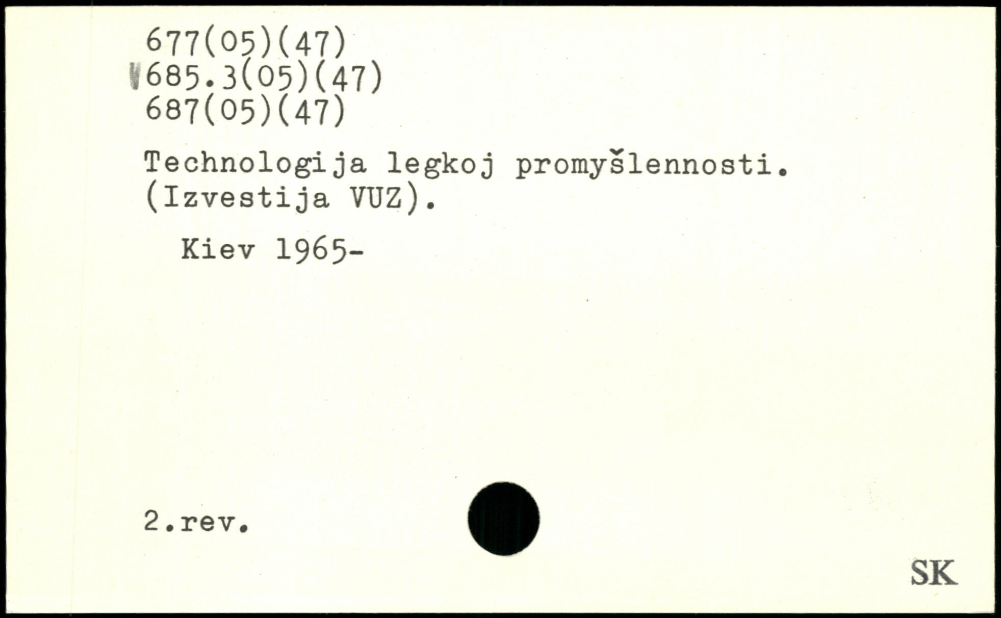 Technologija legkoj promyslennosti. (izvestija VUZ). Kiev 1965-