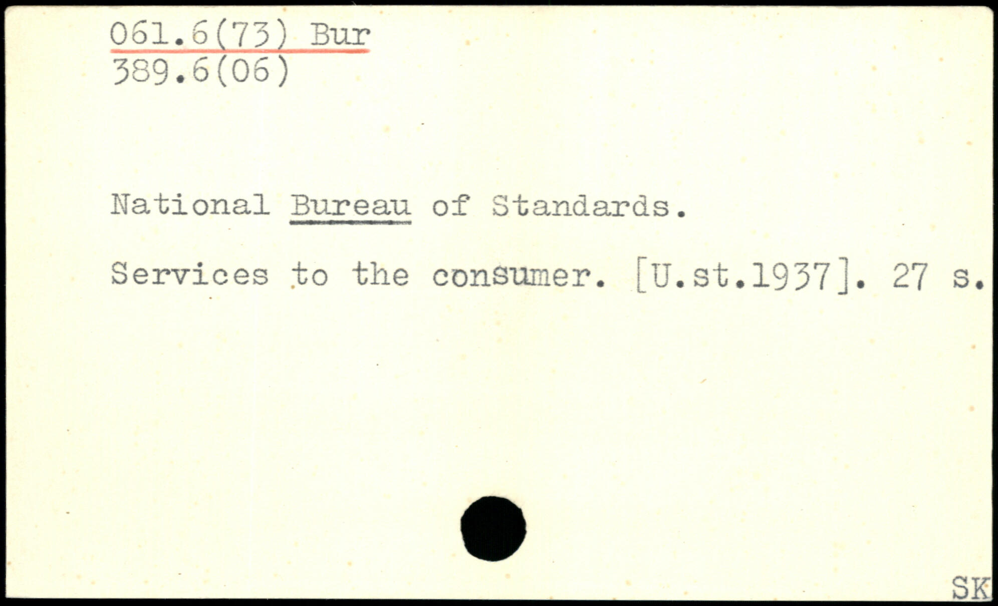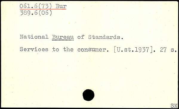 National Bureau of Standards. Services to the consumer. [U.st.1937].