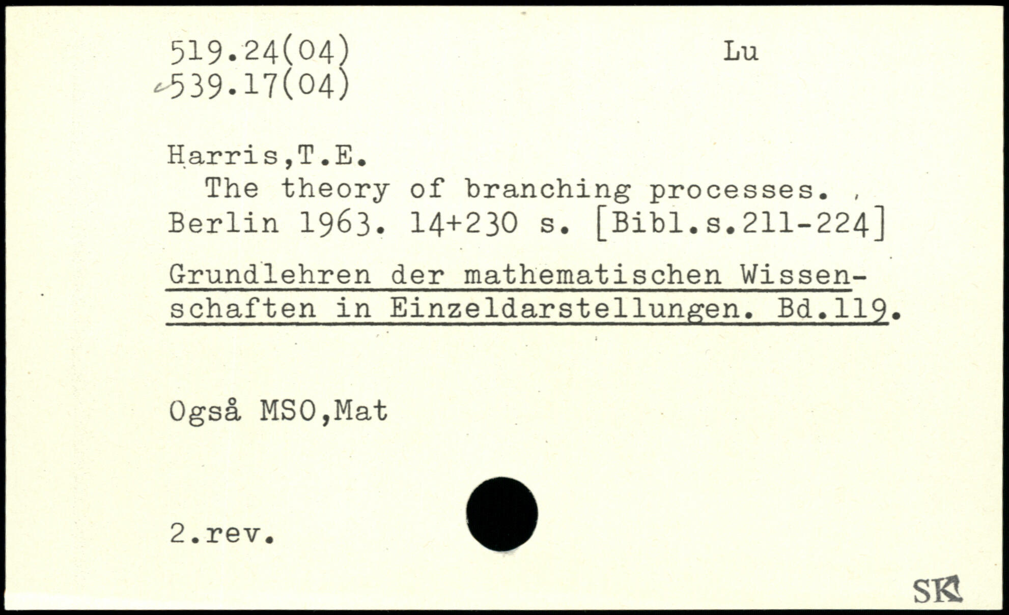 The theory of branching processes.