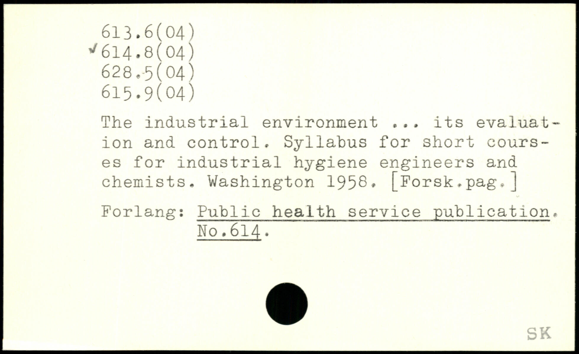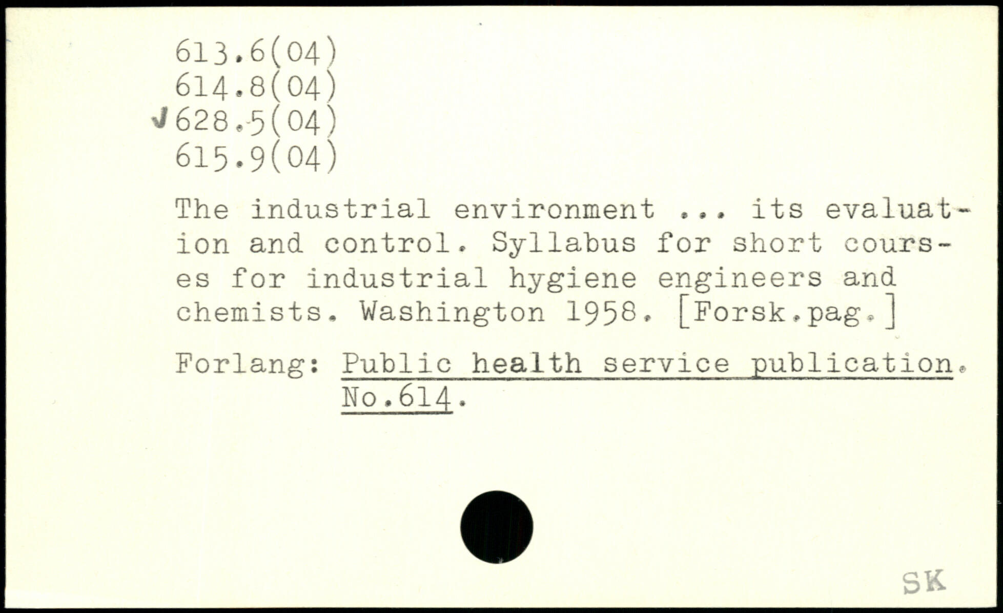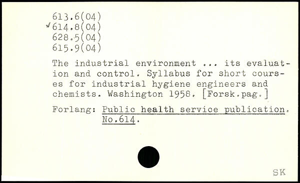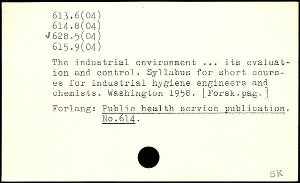 The industrial environment .,. its evaluation and control. Syllabus for short courses for industrial hygiene engineers and chemists