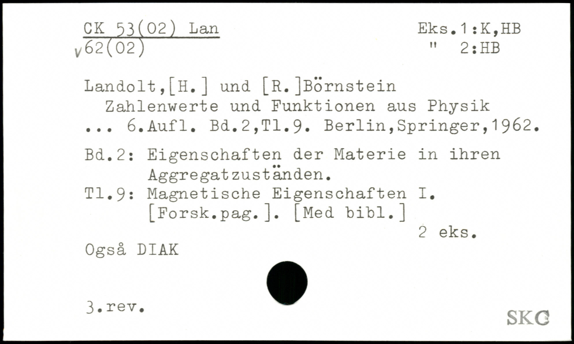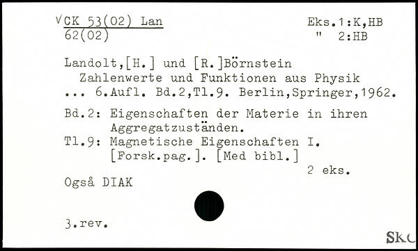 Landolt,[H.] und [R.]BÖrnstein Zahlenwerte und Funktionen aus Physik ...