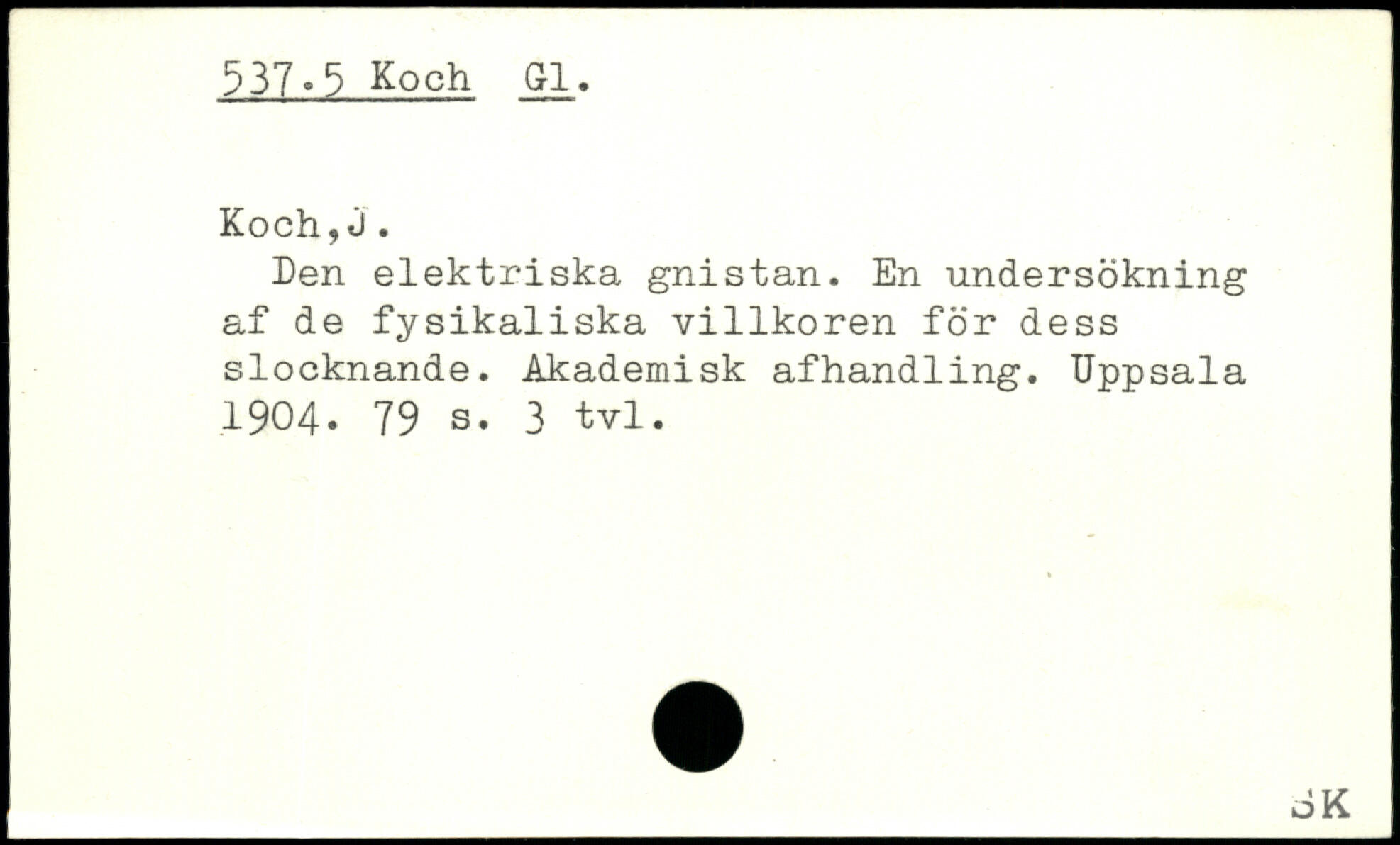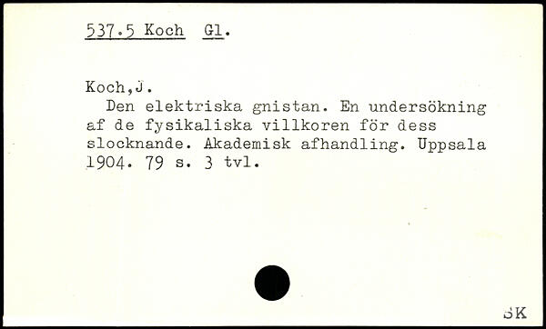 Den elektriska gnistan. En undersökning af de fysikaliska villkoren för dess slocknande. Akademisk afhandling.