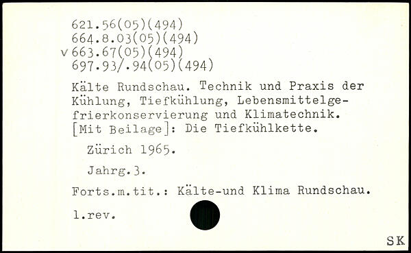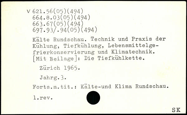 Kälte Rundschau. Technik und Praxis der Kühlung, Tiefkühlung, Lehensmittelgefrierkonservierung und Klimatechnik.