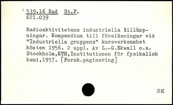 Radioaktivitetens industriella tillämpningar 0 Kompendium till föreläsningar vid ”Industriella gruppens” kursverksamhet hösten 1956.