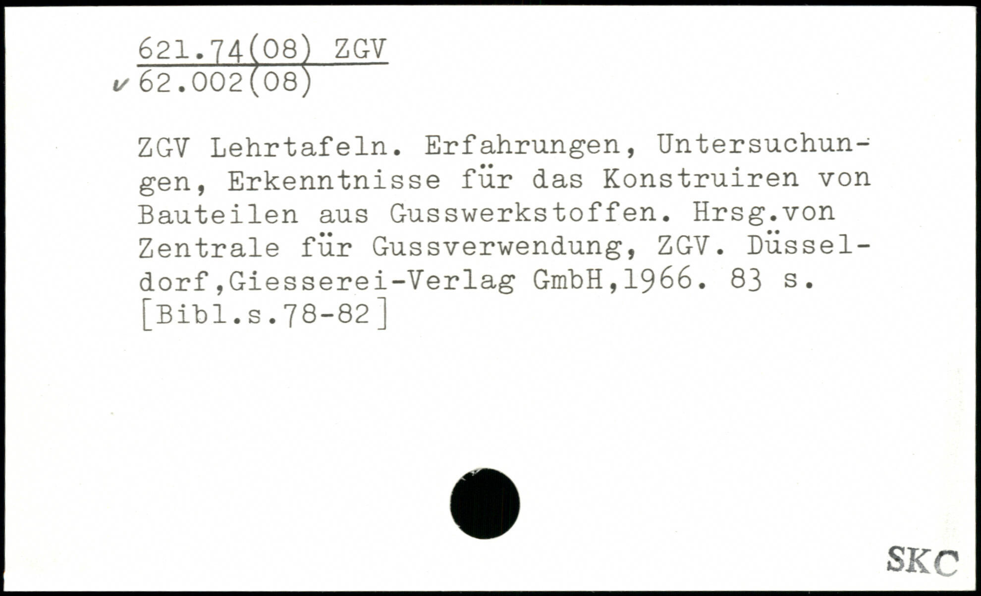 ZGV Lehrtafeln. Erfahrungen, Untersuchungen, Erkenntnisse für das Konstruiren von Bauteilen aus Gusswerkstoffen. Hrsg.von Zentrale für Gussverwendung, ZGV.