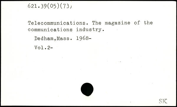 Telecommunications. The magazine of the communications industry. Dedham,Mass. 1968-