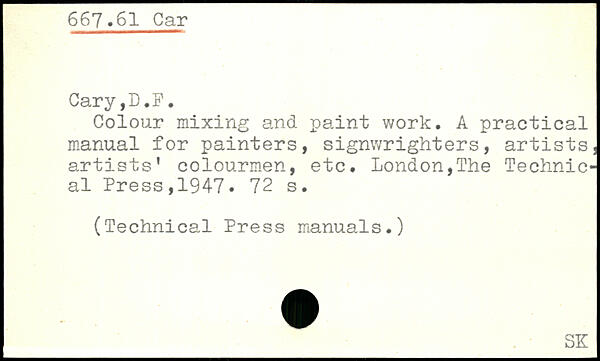 Colour mixing and paint work. A practical manual for painters, signwrighters, artistsa artists’ colourmen, etc.