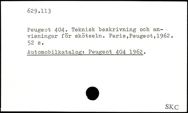 Peugeot 404. Teknisk “beskrivning och anvisningar för skötseln.