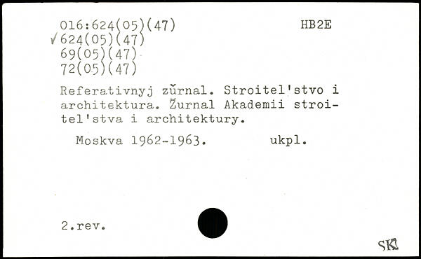 Referativnyj zurnal. Stroitel1stvo i architektura. Zurnal Akademii stroi-tel’stva i architektury.