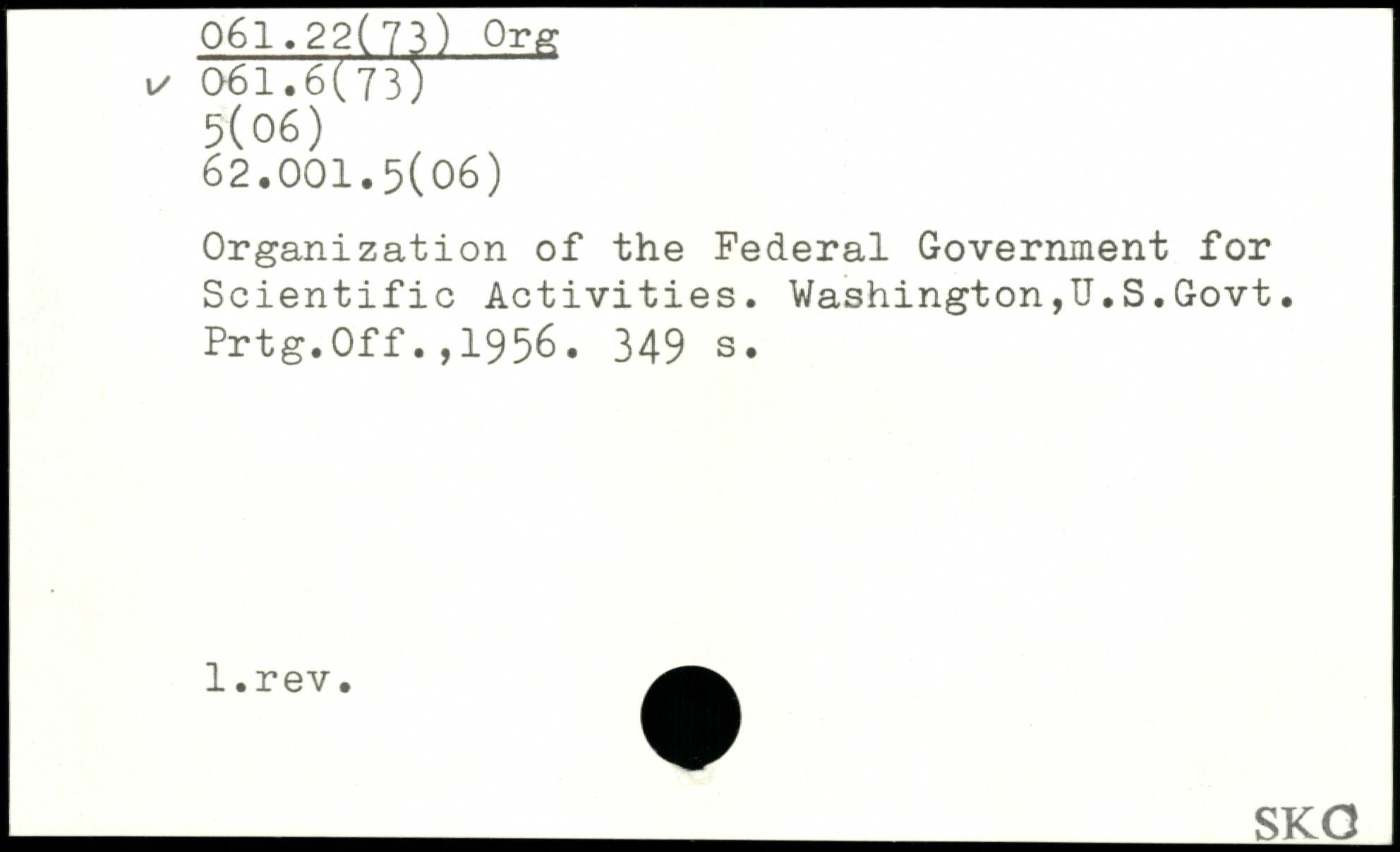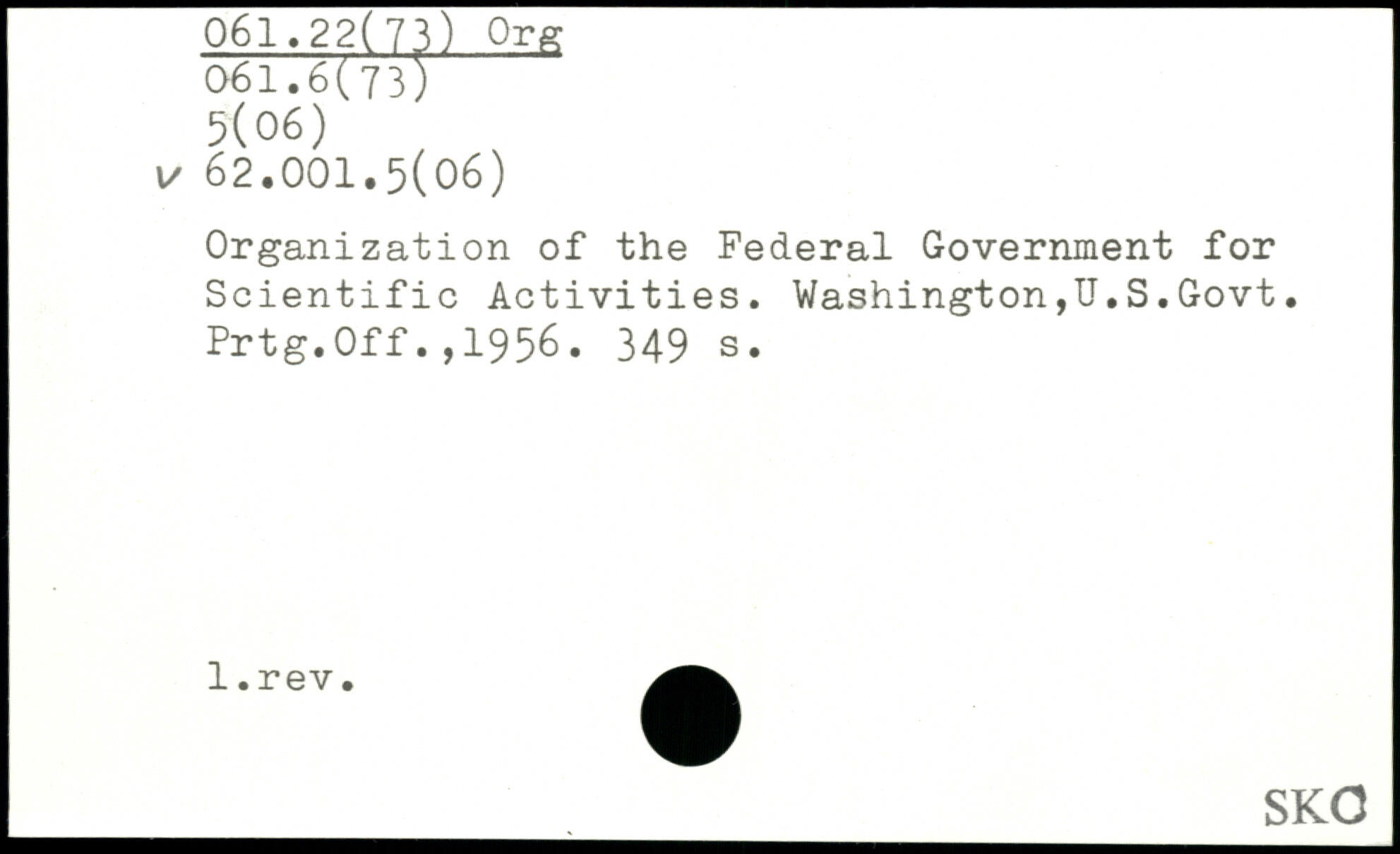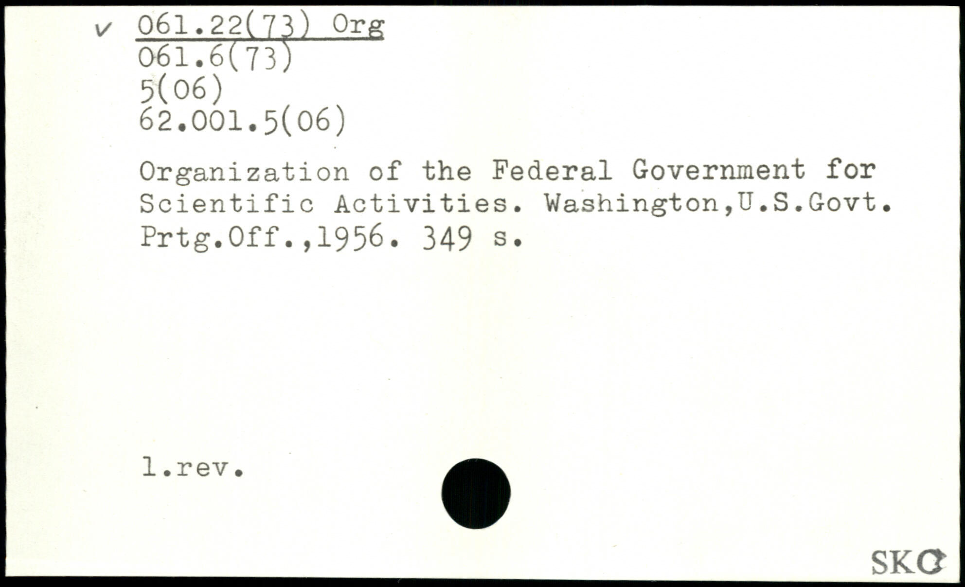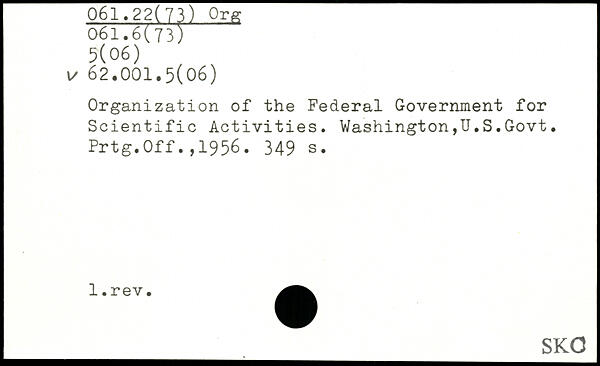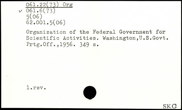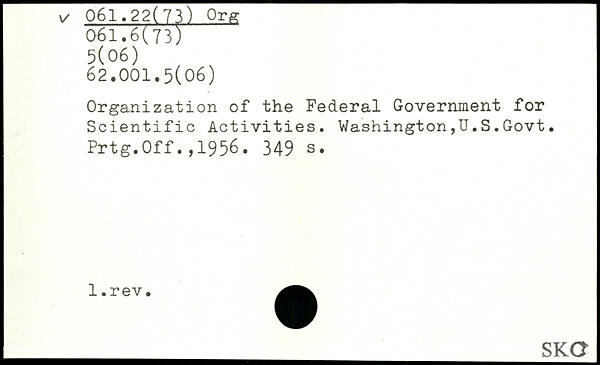 Organization of the Federal Government for Scientific Activities. Washington,U.S.Govt. Prtg.Off.,1956.