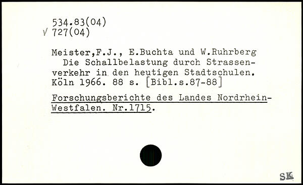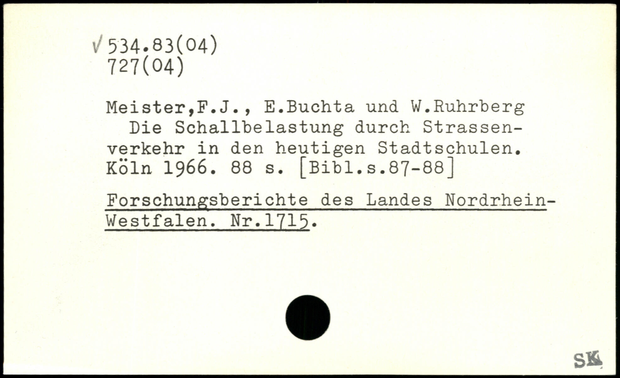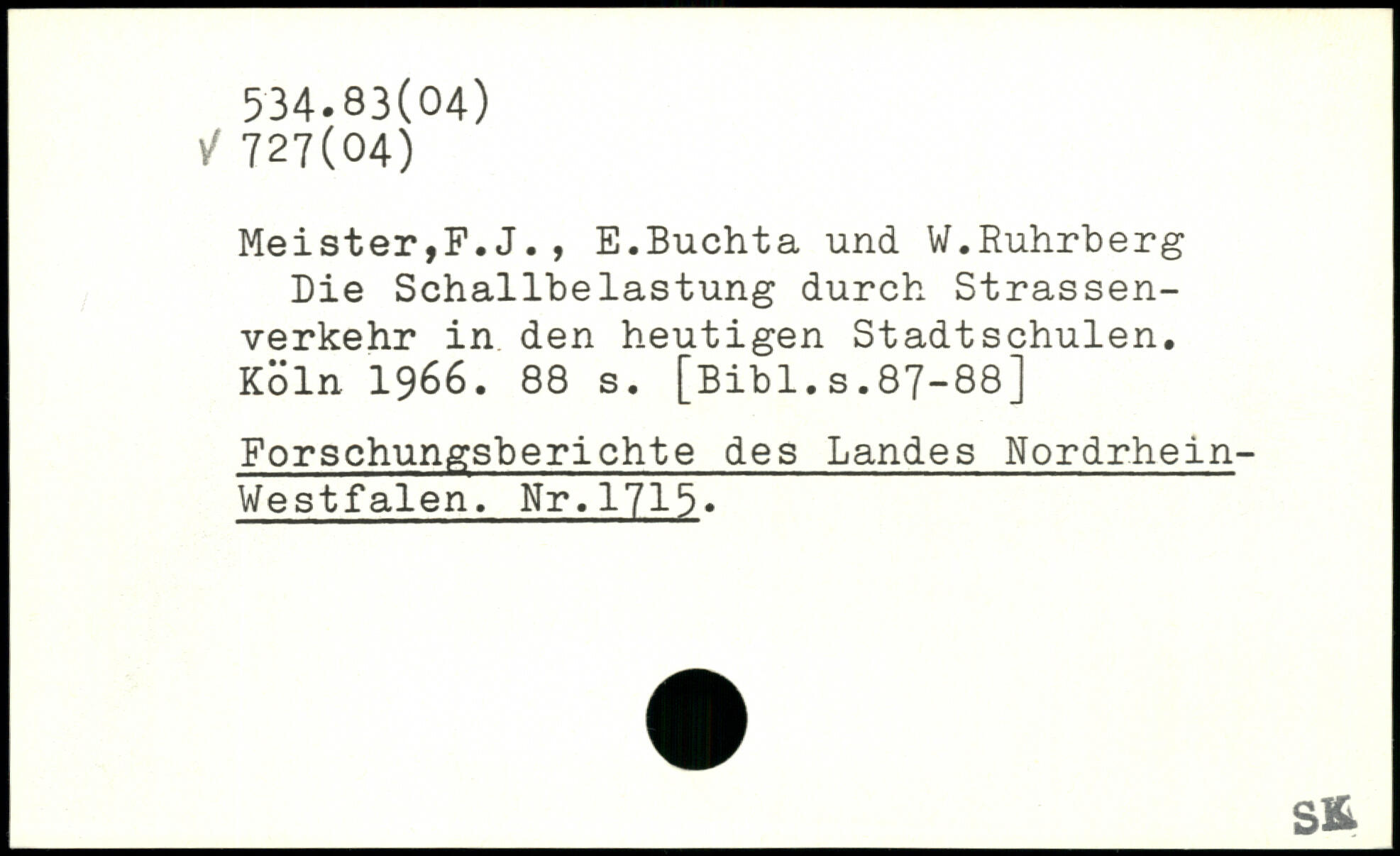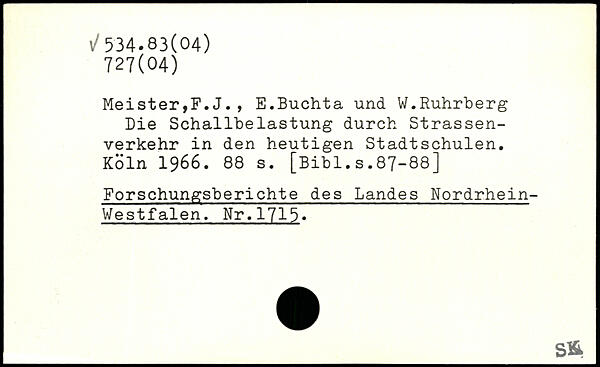 Meister,F.J., E.Buchta und W.Ruhrberg Die Schallbelastung durch Strassen-verkehr in den heutigen Stadtschulen.