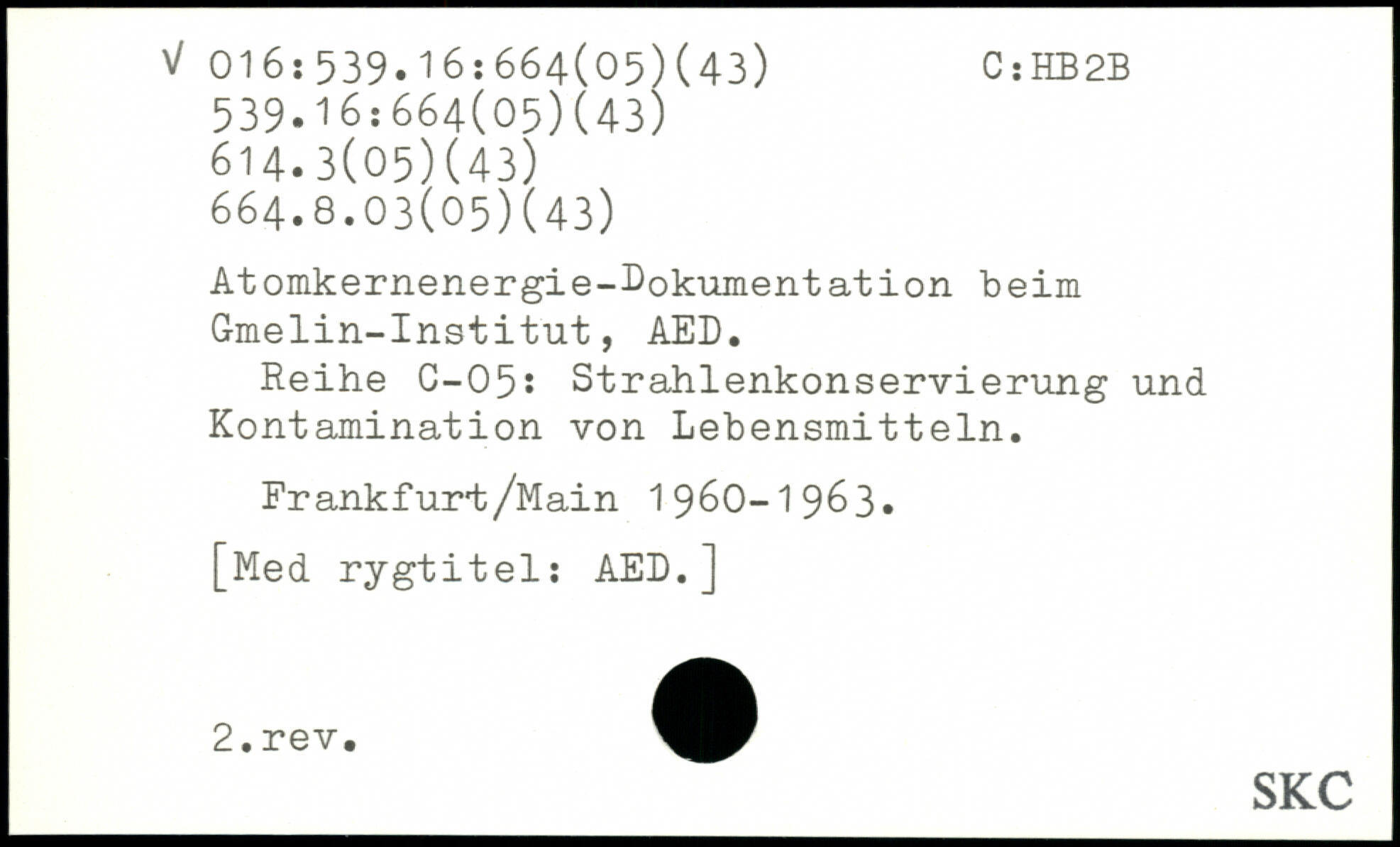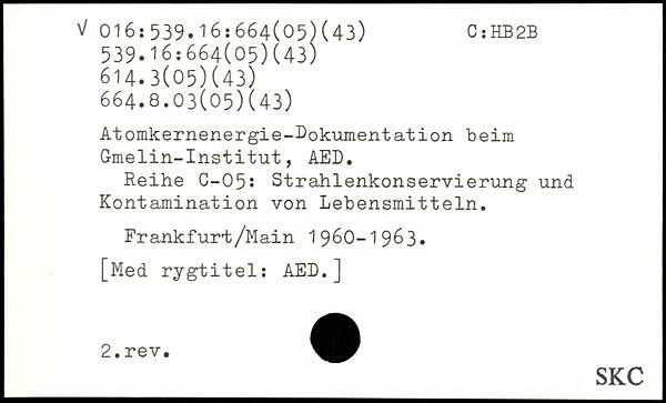 Atomkernenergie-Dokumentation beim G-melin-Institut, AED. Reihe C-05: Strahlenkonservierung und Kontamination von Lebensmitteln. Frankfurt/Main 19^0—19^3.