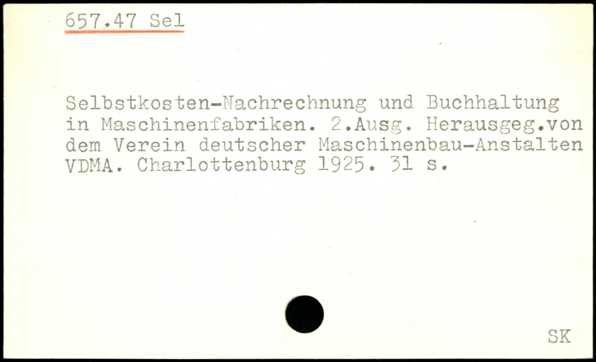 Selbstkosten-Nachrechnung und Buchhaltung in Maschinenfabriken. 2,Ausg. Herausgeg.von dem Verein deutscher Maschinenbau-Anstalten VDMA. Charlottenburg 1925.