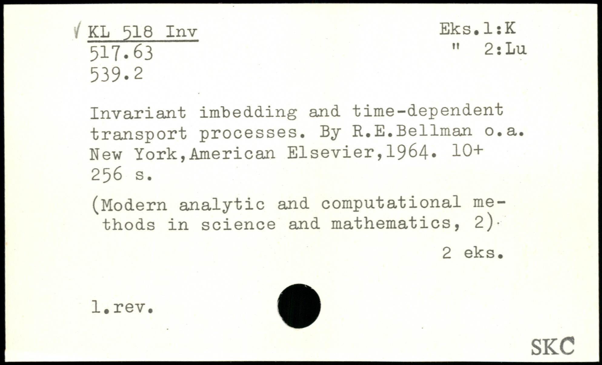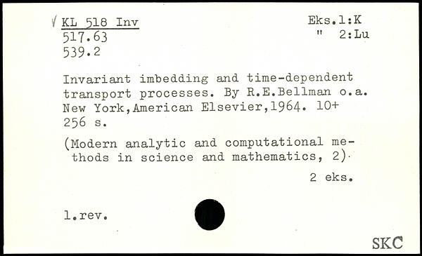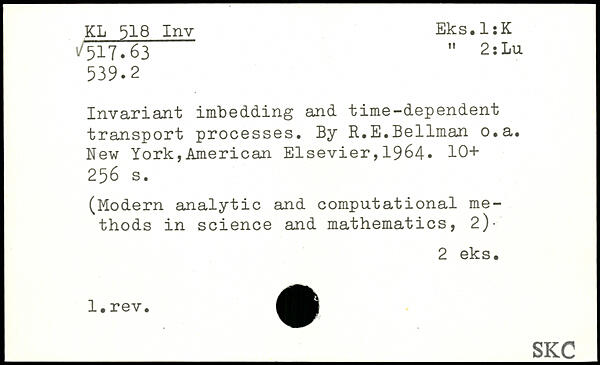Invariant imbedding and time-dependent transport processes. By R.E.Bellman o.a.