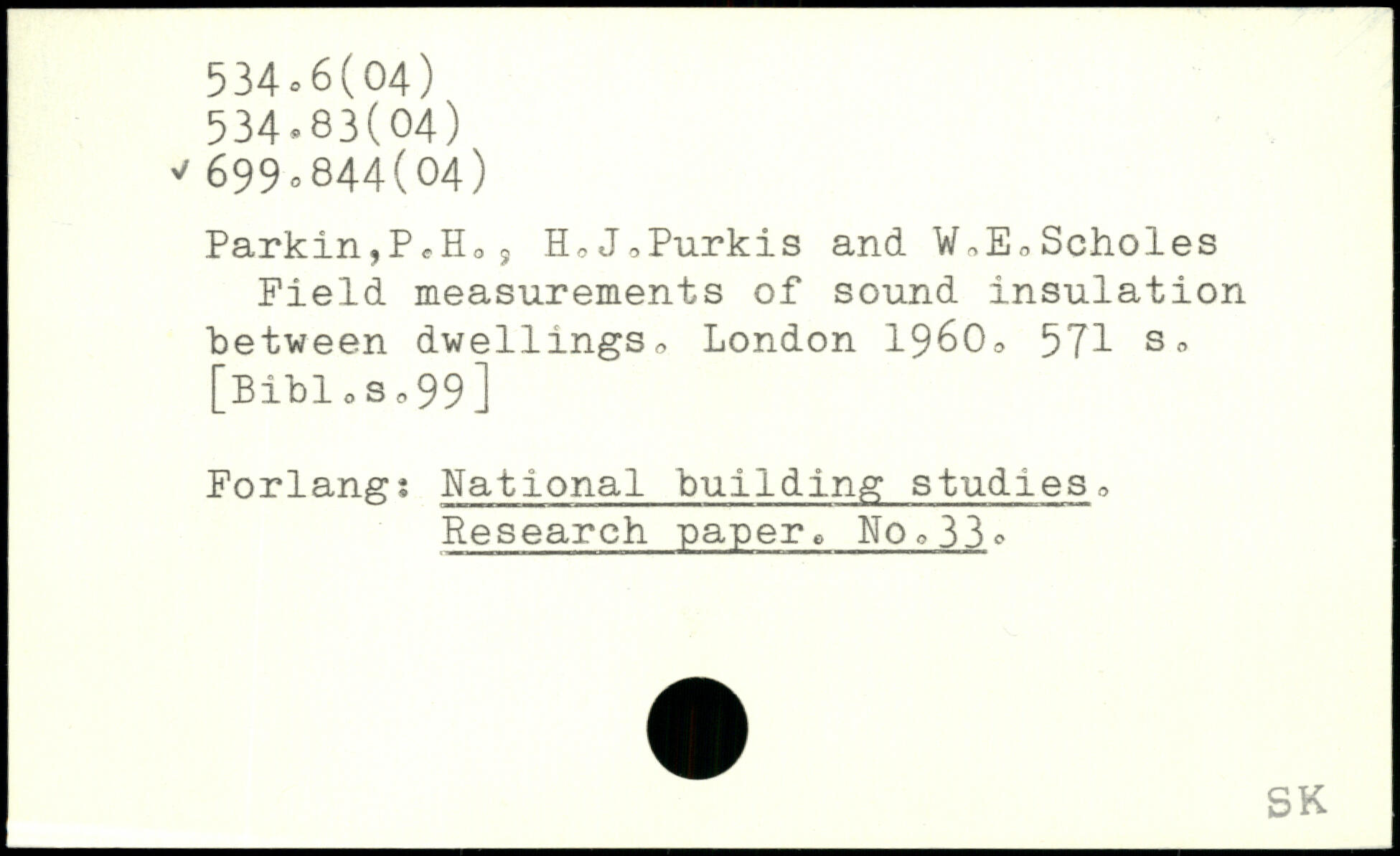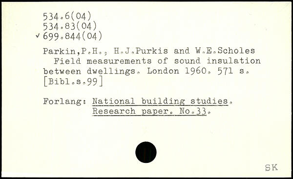 ParkinjPffHos H0J,Purkis and VnE0Scholes Field measurements of sound insulation between dwellings,