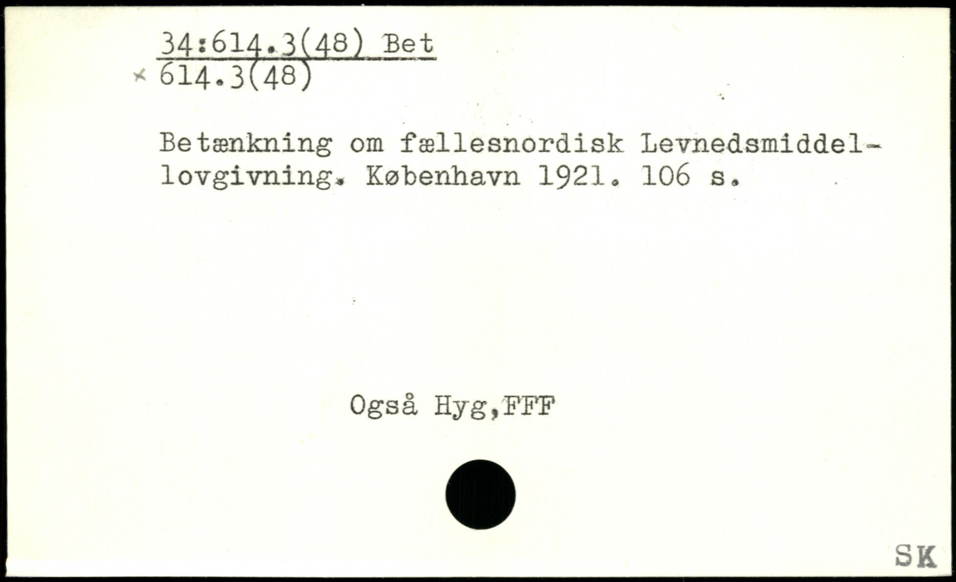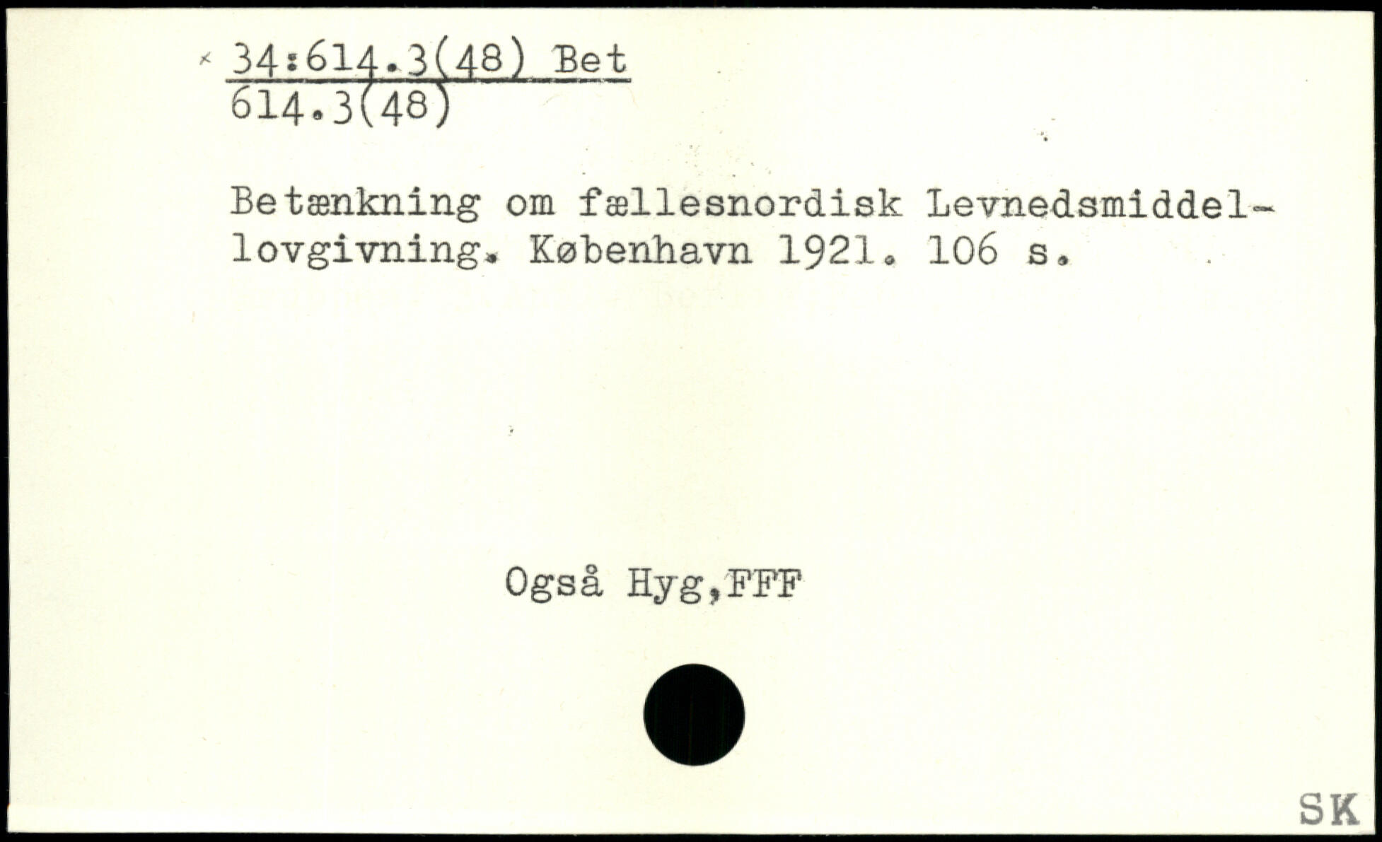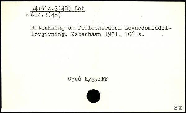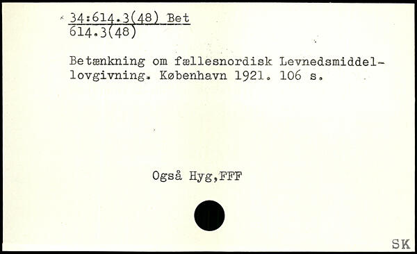Betænkning om fællesnordisk Levnedsmiddellovgivning.