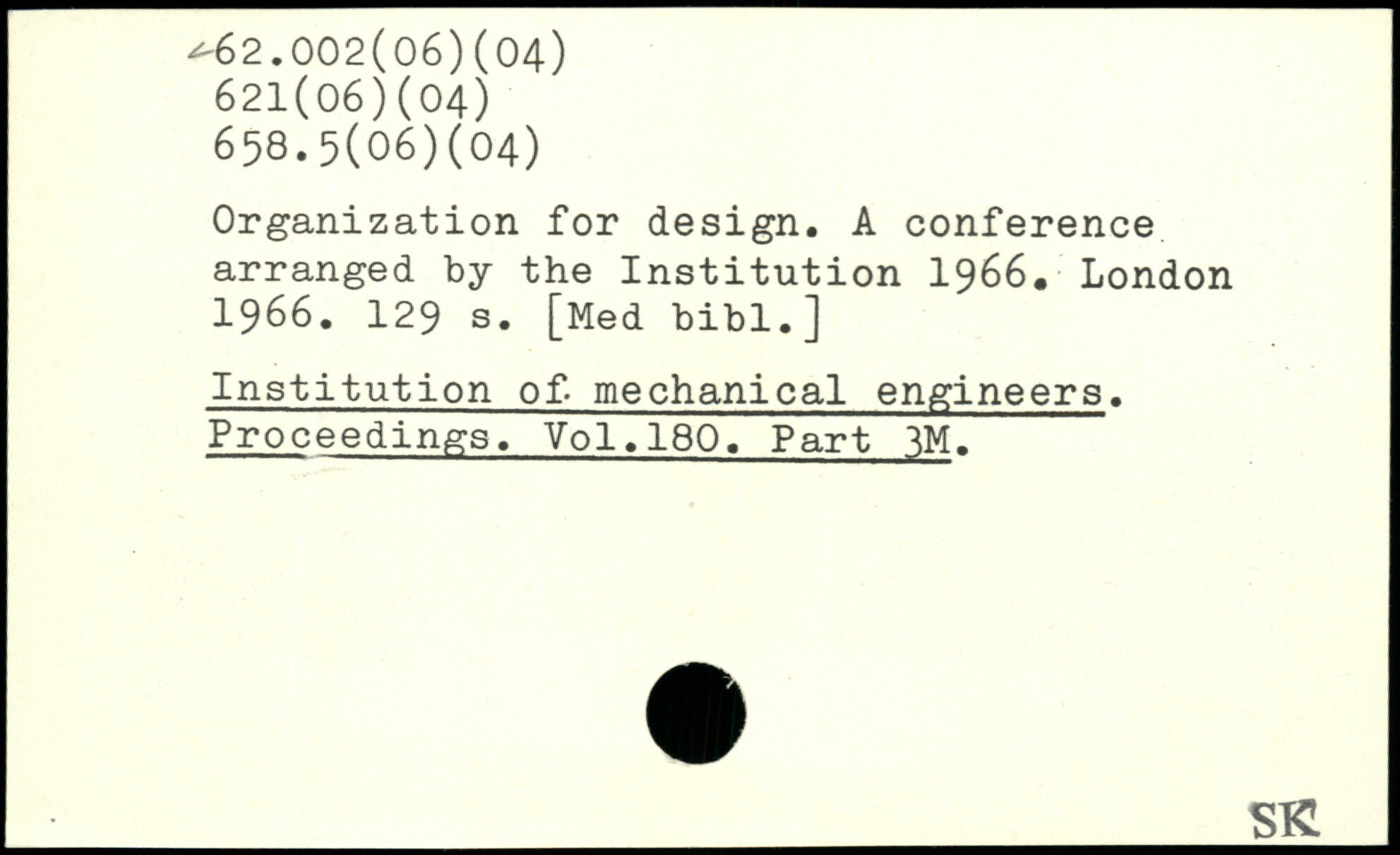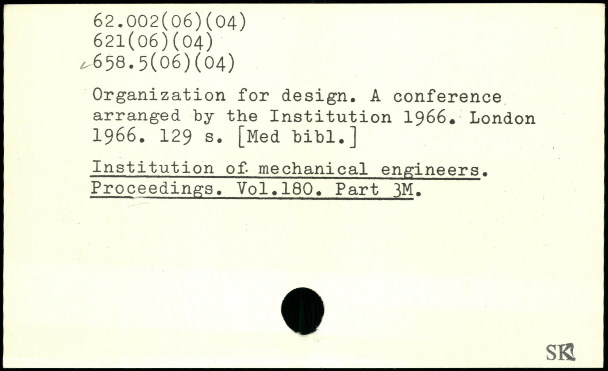 Organization for design. A conference arranged by the Institution 1966.