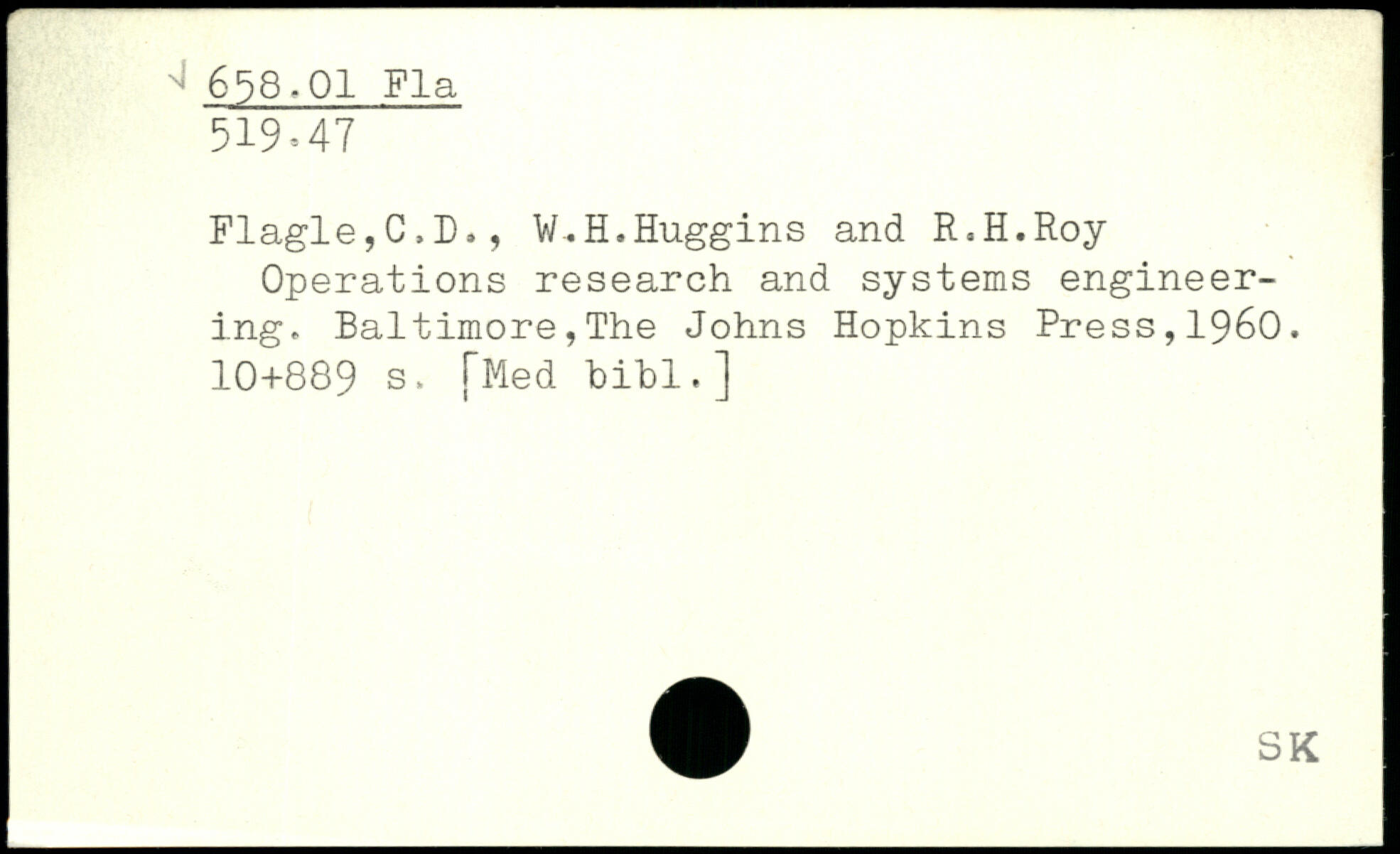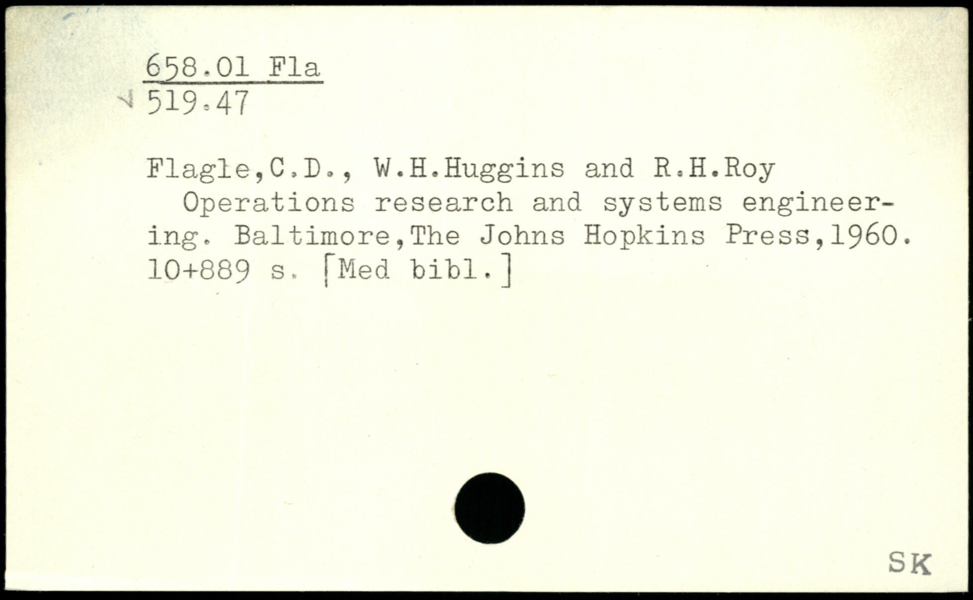 Flagle,C,D,, W.H.Huggins and R,H.Roy Operations research and systems engineering.
