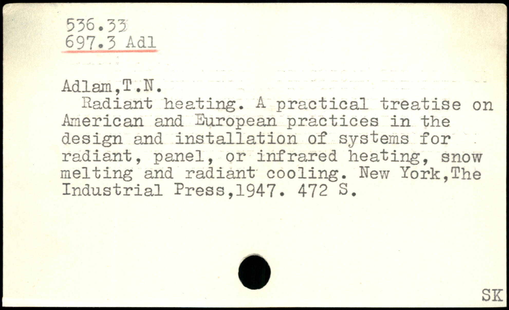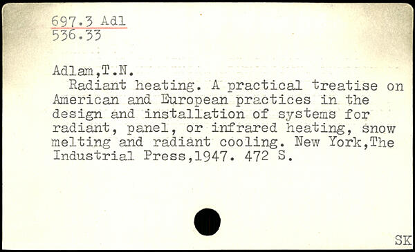 Radiant heating. A practical treatise on American and European practices in the design and installation of systems for radiant, panel, or infrared heating, snow melting and radiant cooling.