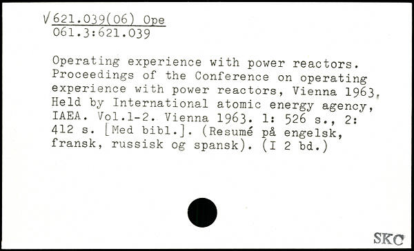Operating experience with power reactors. Proceedings of the Conference on operating experience with power reactors, Vienna 1963, Held by International atomic energy agency, IAEA.