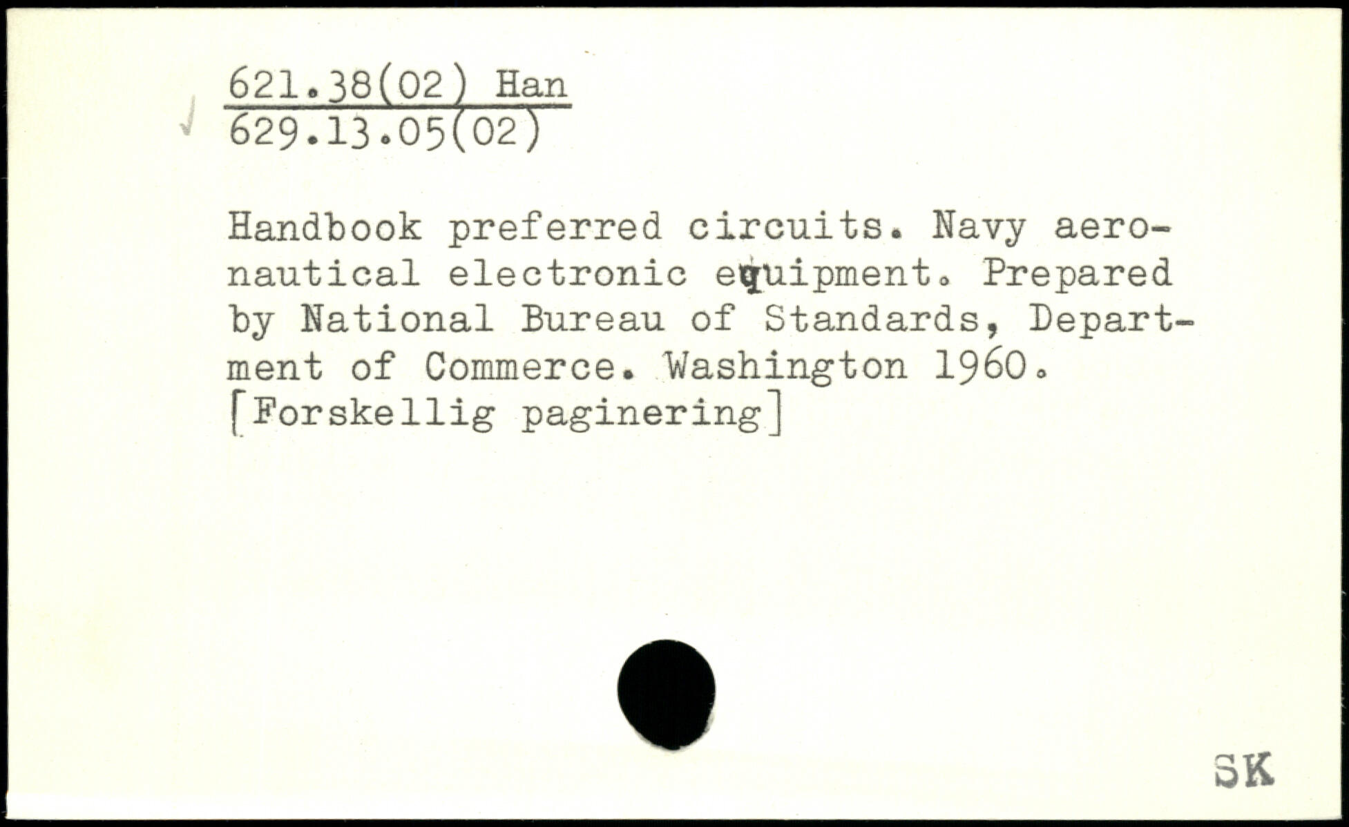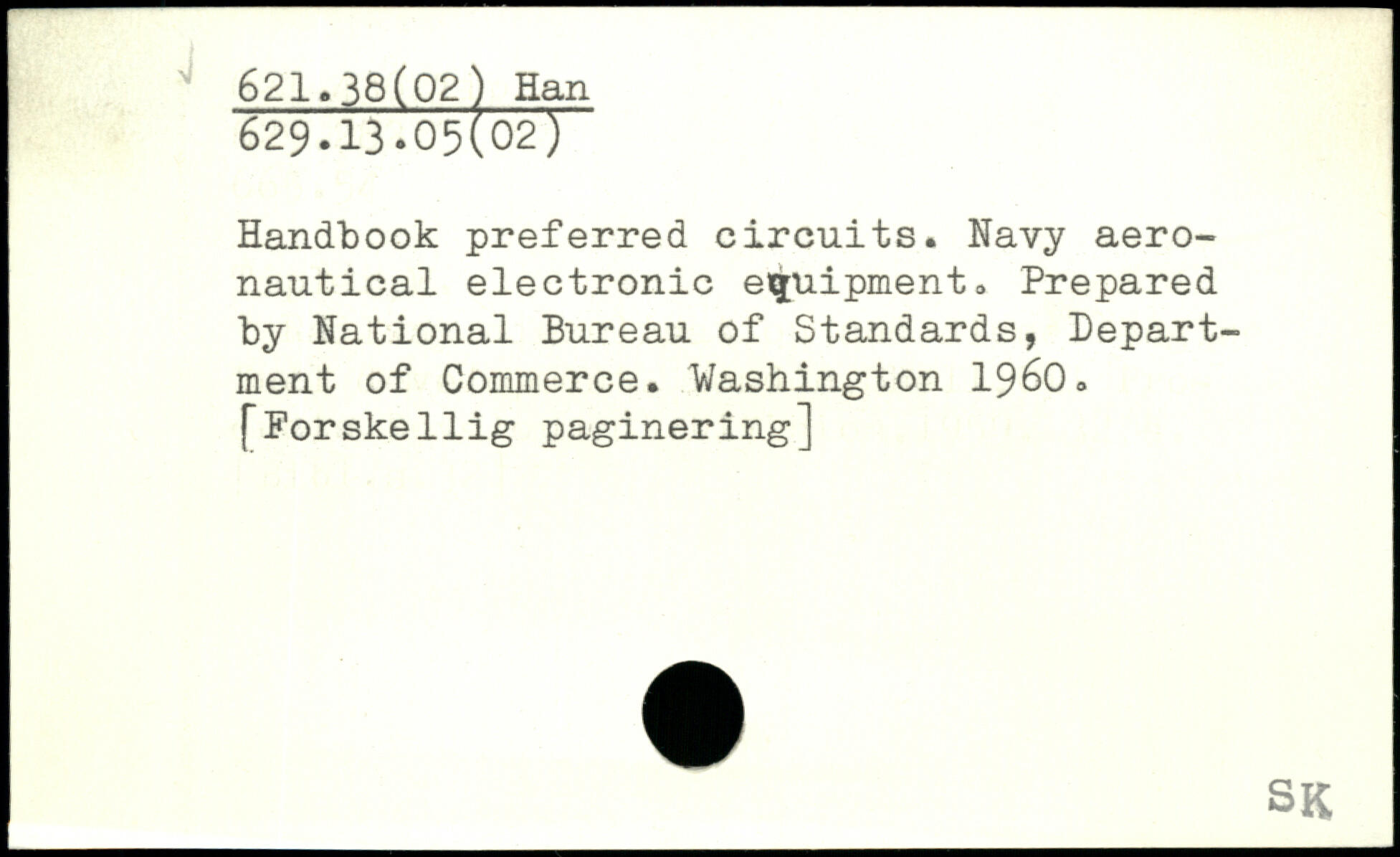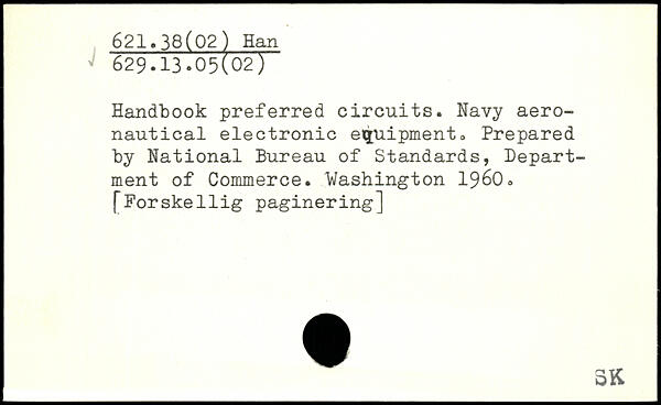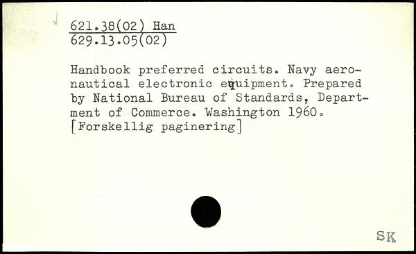 Handbook preferred circuits. Navy aeronautical electronic equipment. Prepared by National Bureau of Standards, Department of Commerce.