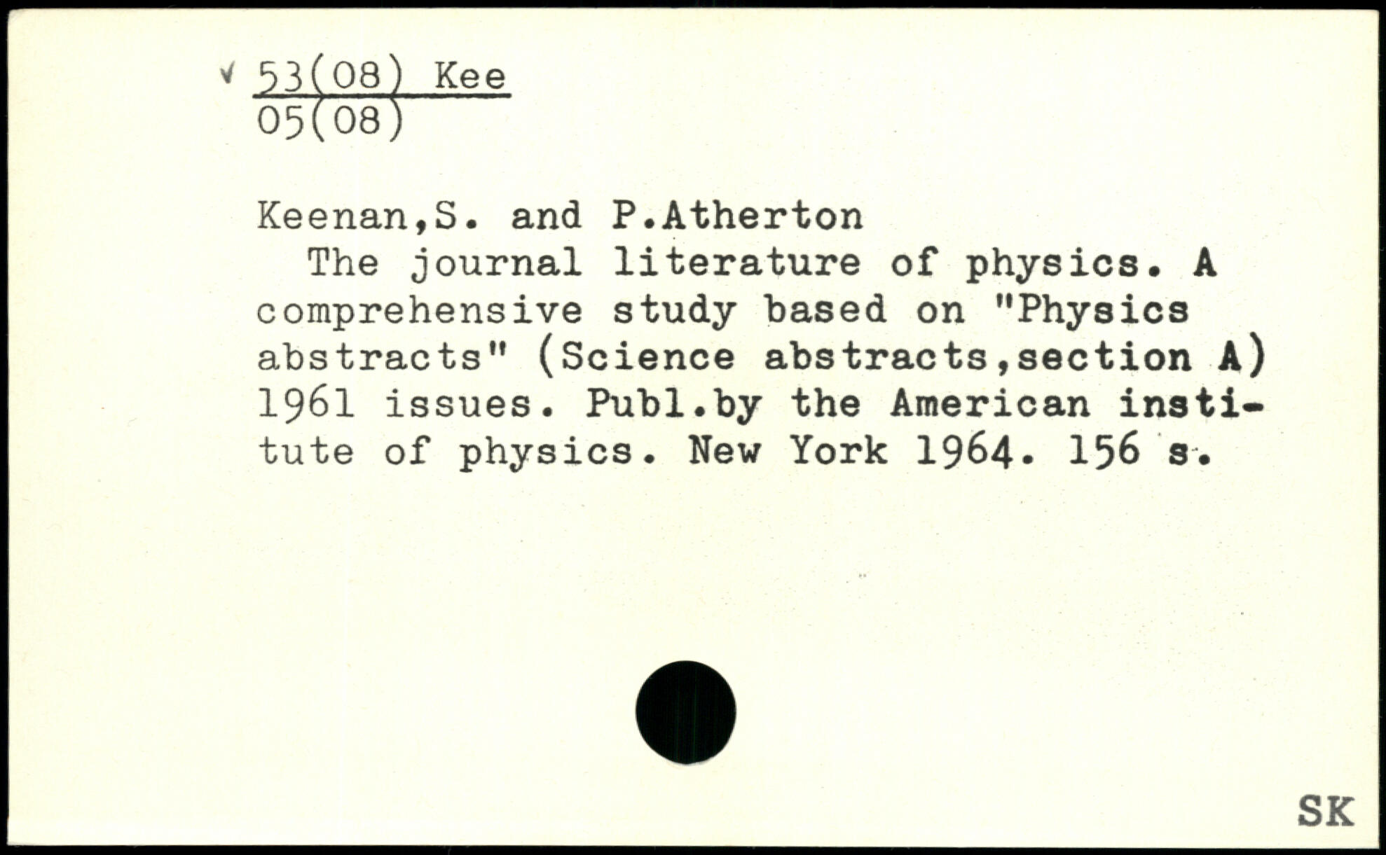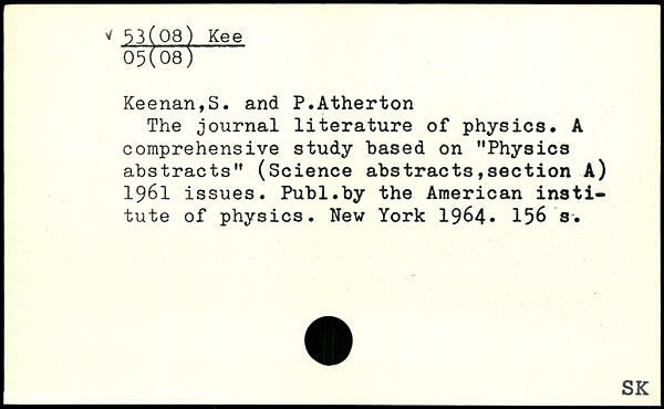 The journal literature of physics. A comprehensive study based on ”Physics abstracts" (Science abstracts,section A) 1961 issues.
