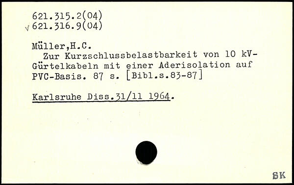 Zur Kurzschlussbelastbarkeit von 10 kV-G-iirtelkabeln mit einer Aderisolation auf PVC-Basis.