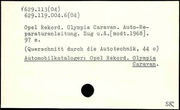 Opel Rekord. Olympia Caravan. Auto-Reparaturanleitung. Zug u.å.[modt.1968].