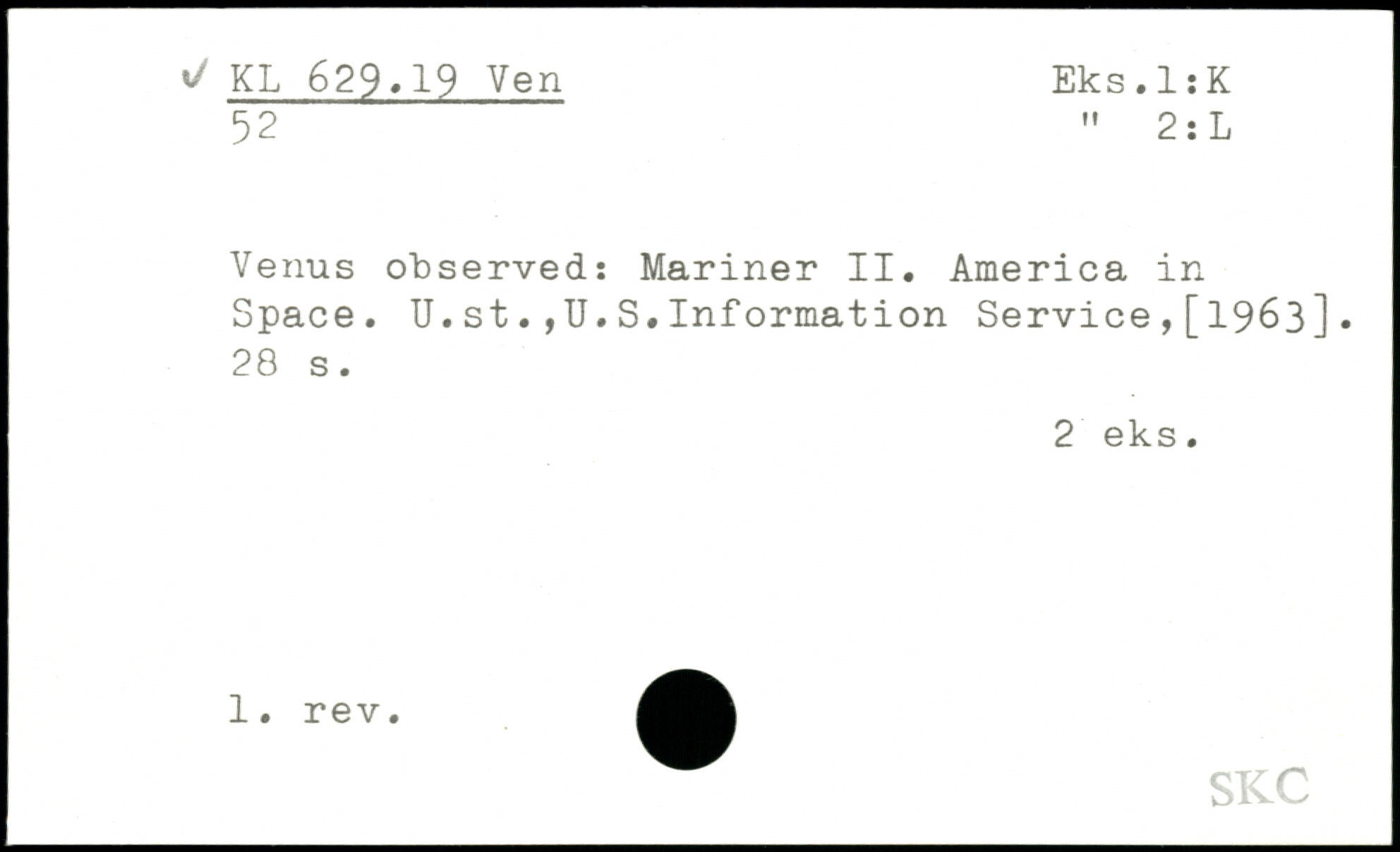 Venus observed: Mariner II. America in Space. U.st.,U.S.Information Service,[1963].
