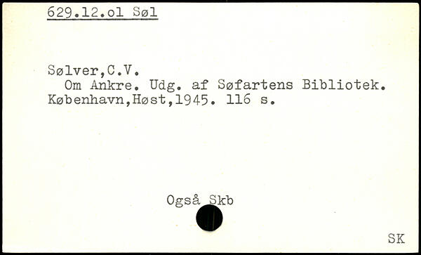 Om Ankre. Udg. af Søfartens Bibliotek.
