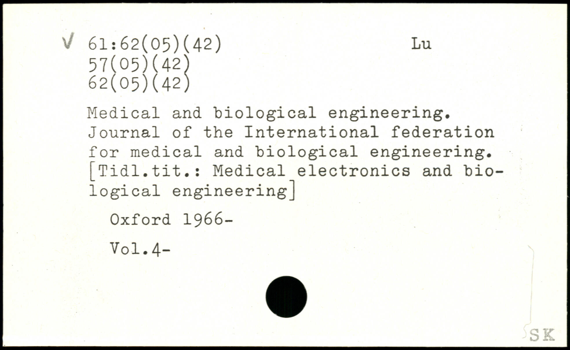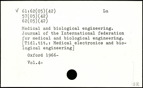 Medical and biological engineering. Journal of the International federation for medical and biological engineering. [Tidl.tit.s Medical electronics and biological engineering]