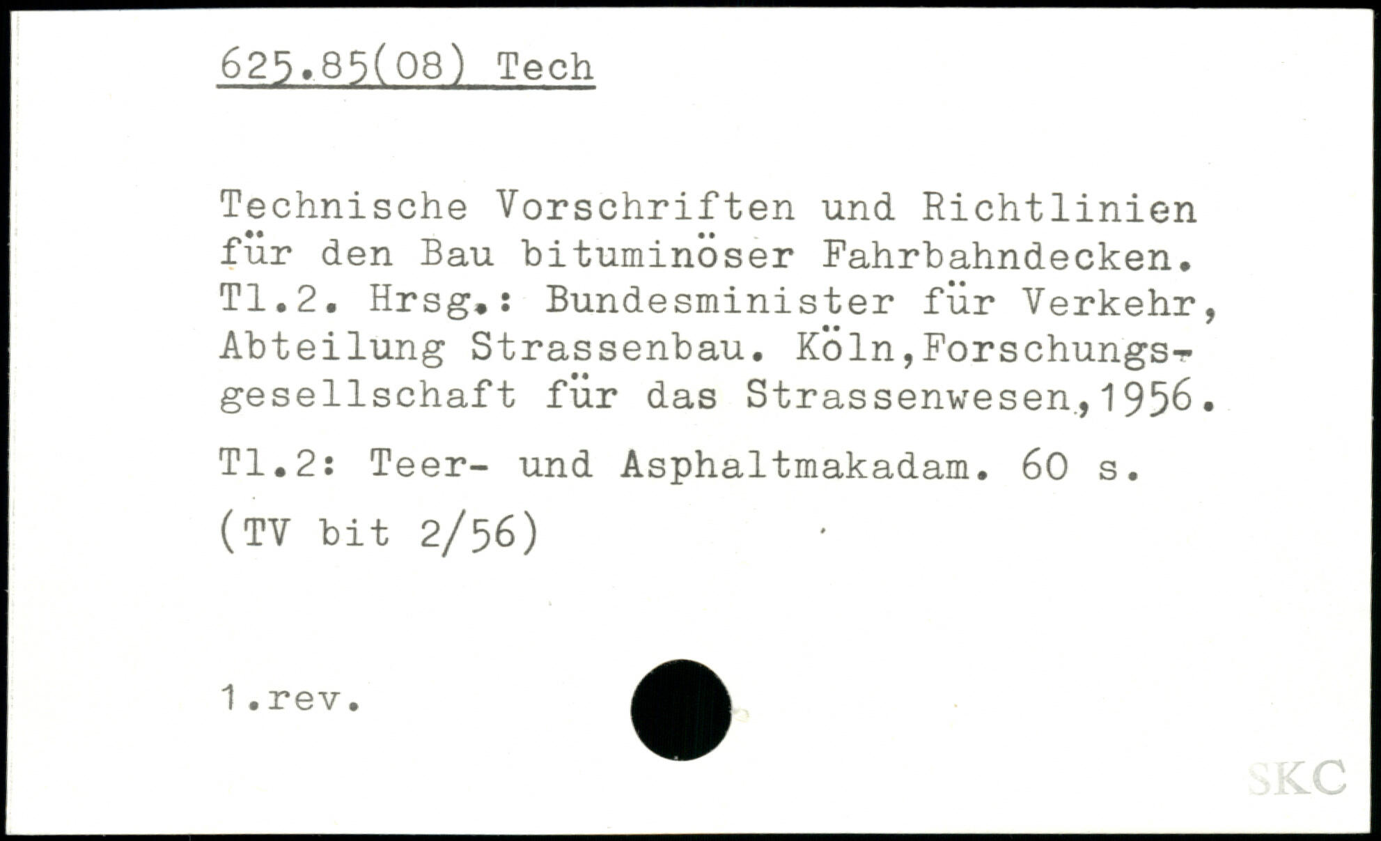 Technische Vorschriften und Richtlinien für den Bau bituminöser Fahrbahndecken. TI.2. Hrsg,: Bundesminister für Verkehr, Abteilung Strassenbau. Köln,Forschungs^ gesellschaft für das Strassenwesen,1956. TI.2: Teer- und Asphaltmakadam.