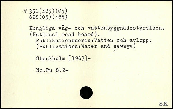 Kungliga väg- och vattenbyggnadsstyrelsen. (National road board). Publikationsserie:Vatten och avlopp. (Publicätions:Water and sewage)